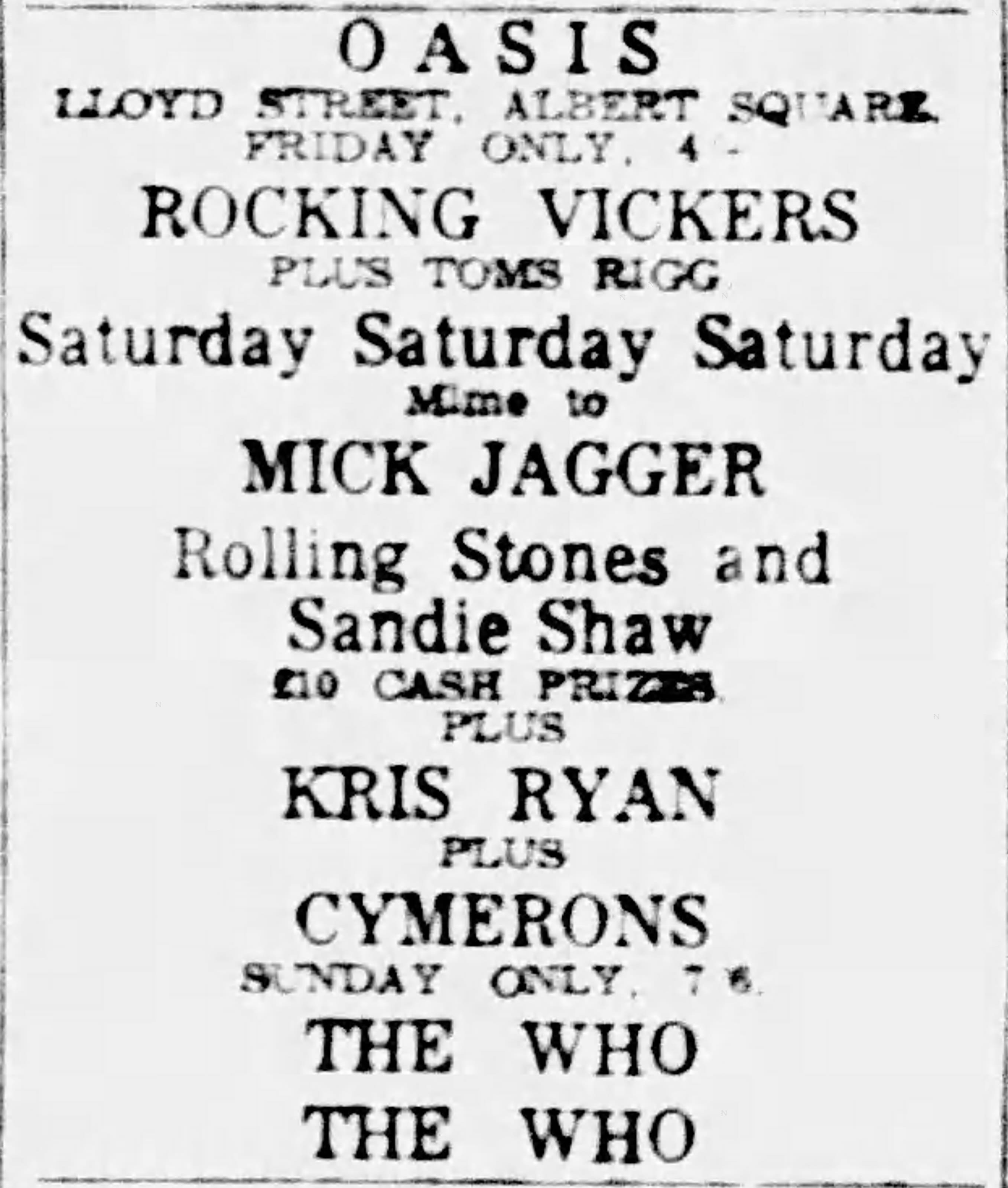 | Sunday, February 20, 1966 The Who play the Oasis Club in Manchester |