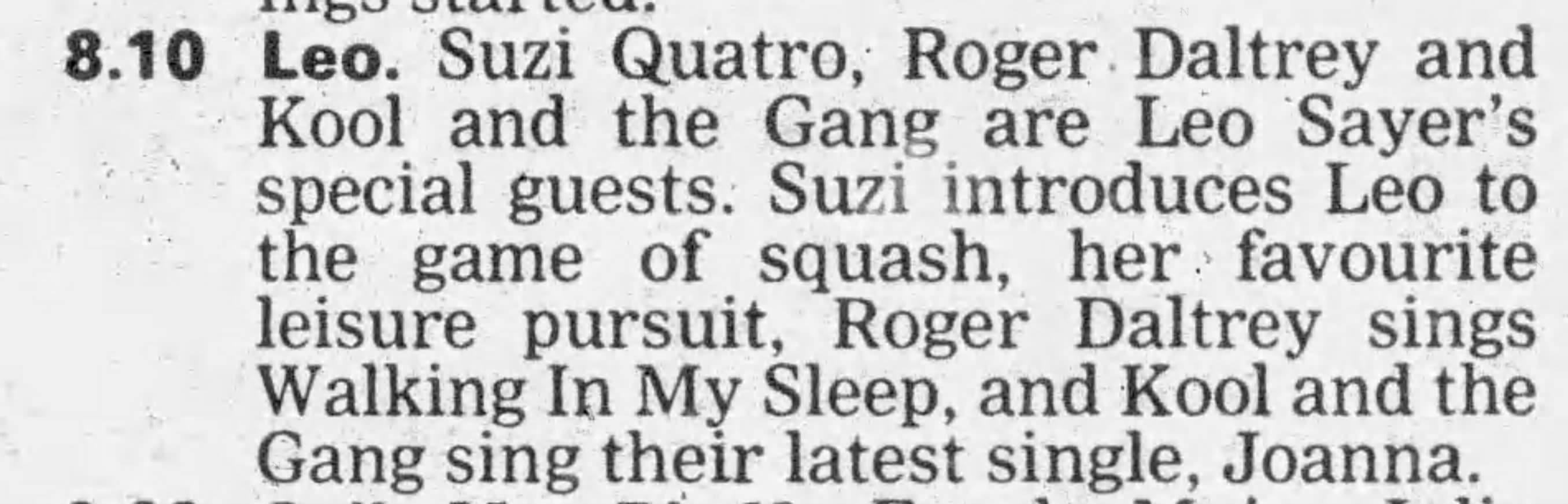 | Monday, February 20, 1984 Roger appears on “The Leo Sayer Show” |