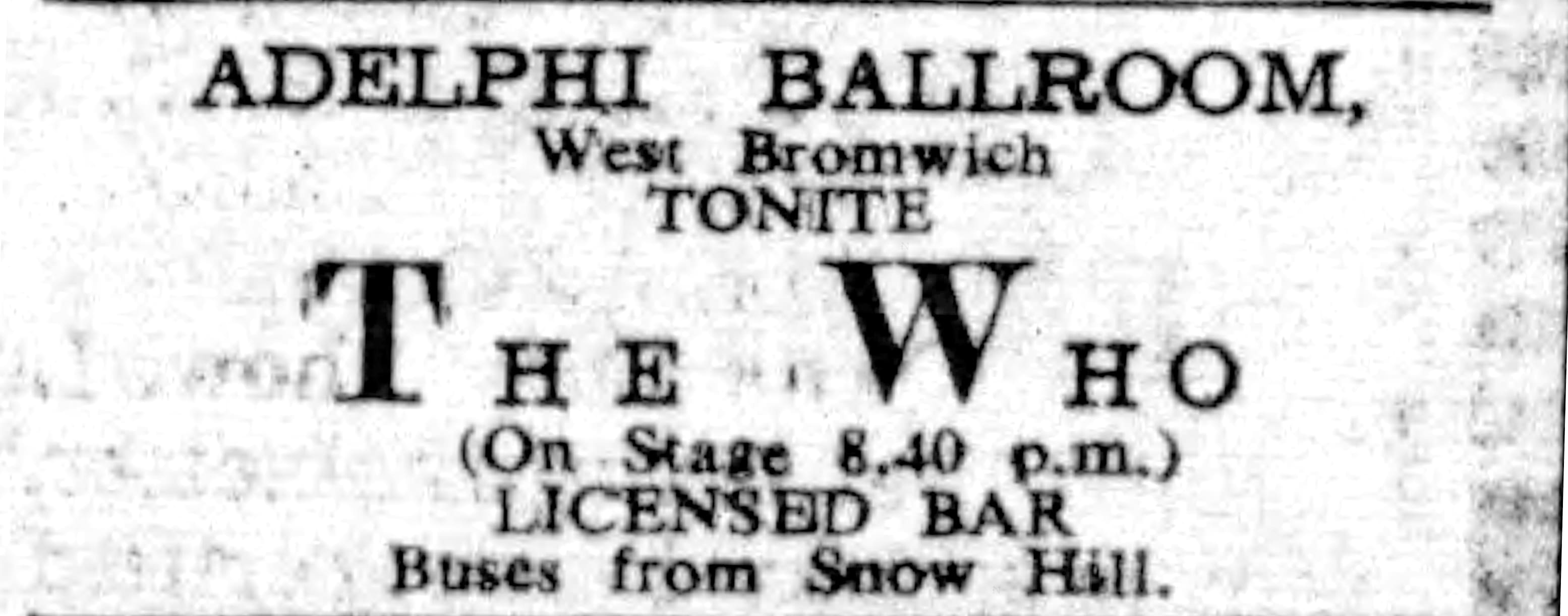 | Saturday, January 22, 1966 The Who play the Adelphi in West Bromwich |