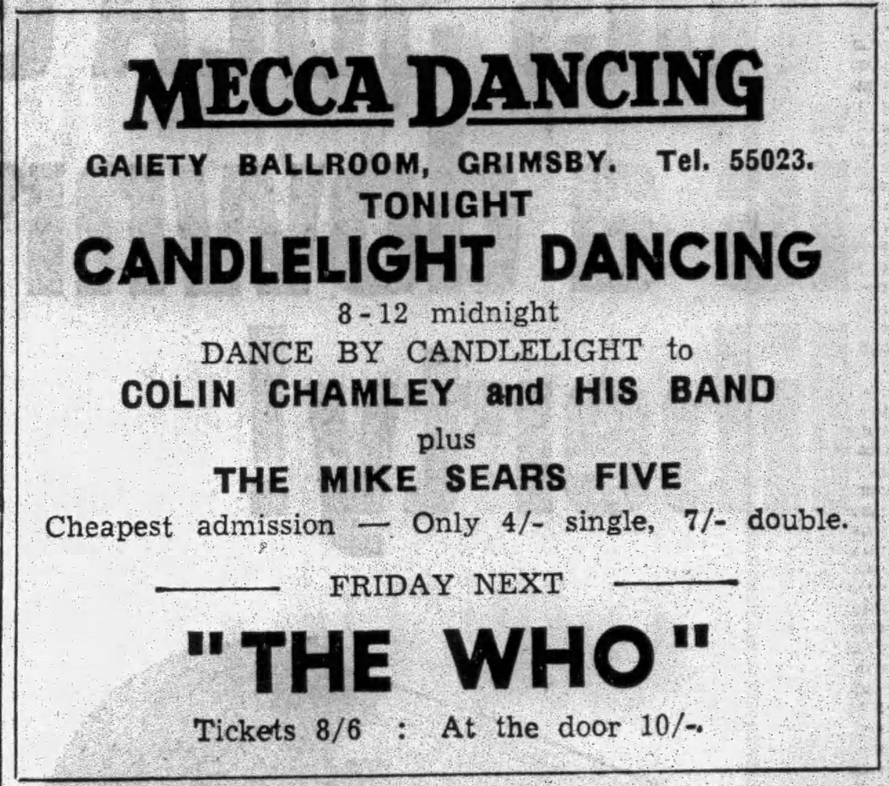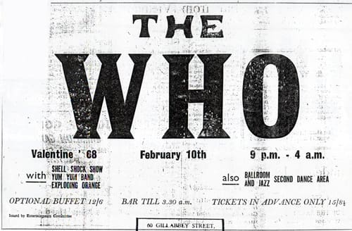 | Friday, February 10, 1967 The Who play the Gaiety Ballroom in Grimsby |