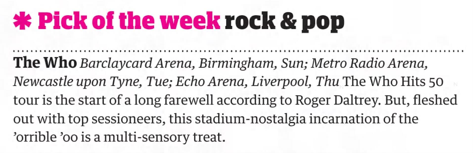 | Wednesday, February 11, 2004 Roger appears on Liz Kershaw’s show on BBC 6 Music discussing the upcoming Teenage Cancer Trust showRead More »2004-02-11 |