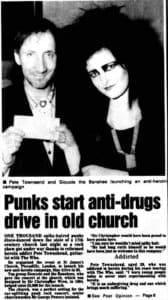 Pete holds the first concert organized by the Anti-Heroin campaign at St. James Church in London. Siouxsie and the Banshees perform and at the end Siouxsie presents Pete with a check for £5000. Afterwards they… More »