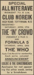 The Who play the "All Nite Rave" at Club Noreik in Tottenham