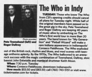 The Who play the Conseco Fieldhouse in Indianapolis, Indiana