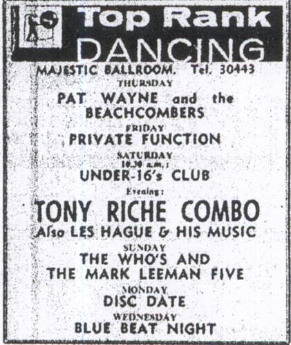 Sunday, May 24th, 1964 The Who play the Majestic Ballroom in Luton « 1964-05-21 1964-05-25 » Comments Leave a Reply Cancel replyYou must be logged in to post a comment. This site uses Akismet to reduce spam. Learn how your comment data is processed. Map Venue Majestic Ballroom, Luton I was there Latitude: 51.882752 Longitude: -0.418398 For more information on The Who’s history and concerts visit our friends www.thewhothismonth.com www.thewholive.com
