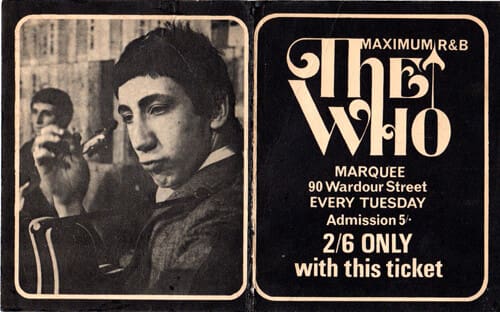 The Who's second Tuesday night at the Marquee Club in London. 298 attend, 10 times as many as the last week.