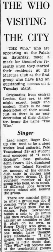 The Who play Palais de Dance in Peterbourough, Northamptonshire supported by The Nemkons and Beats Limited