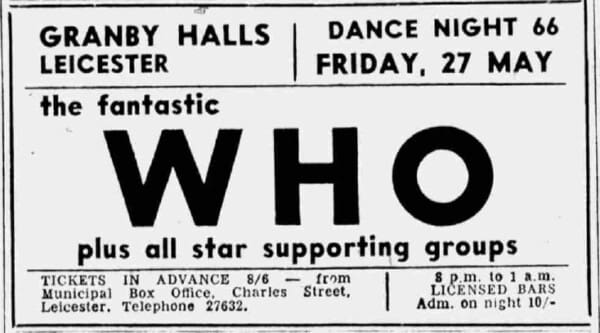 Friday, May 27th, 1966 The Who play in Leicester at Granby Halls « 1966-05-26 1966-05-28 » Comments Leave a Reply Cancel replyYou must be logged in to post a comment. This site uses Akismet to reduce spam. Learn how your comment data is processed. Map Venue Granby Halls I was there Latitude: 52.625202 Longitude: -1.132850 For more information on The Who’s history and concerts visit our friends www.thewhothismonth.com www.thewholive.com