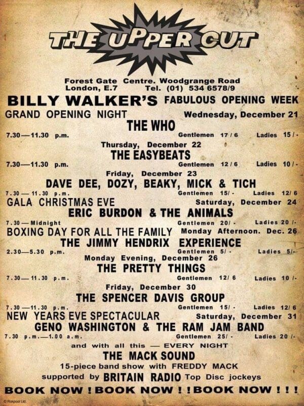 Wednesday, December 21st, 1966 The Who play The Upper Cut in Forest Gate, London « 1966-12-17 1966-12-30 » Photos Comments Leave a Reply Cancel replyYou must be logged in to post a comment. This site uses Akismet to reduce spam. Learn how your comment data is processed. Map Venue The Upper Cut, Forest Gate I was there Latitude: 51.547215 Longitude: 0.024694 For more information on The Who’s history and concerts visit our friends www.thewhothismonth.com www.thewholive.com