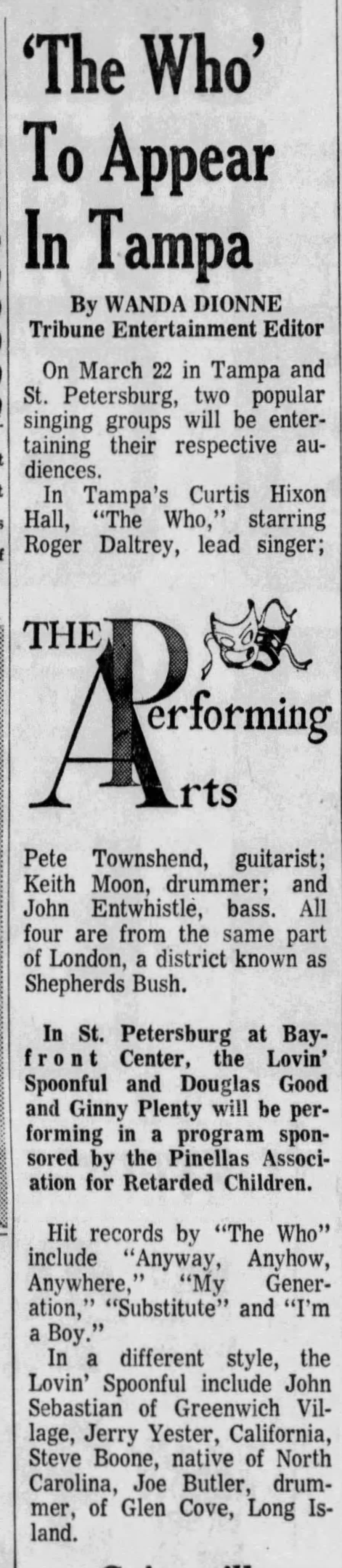 The Who play the Curtis Hixon Hall in Tampa, Florida