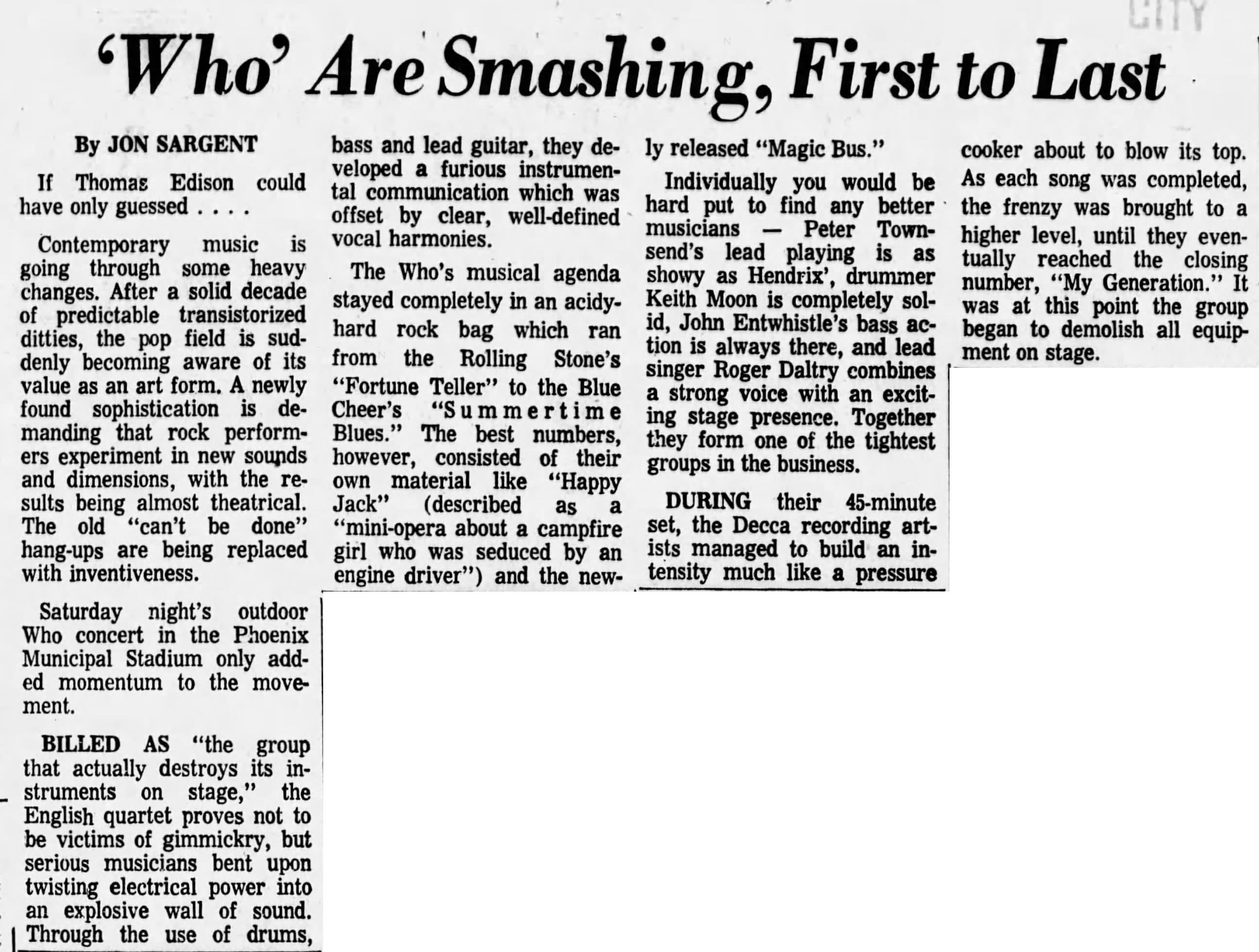 The Who play the Phoenix Municipal Stadium (locally known as "Giant Stadium") in Phoenix, Arizona