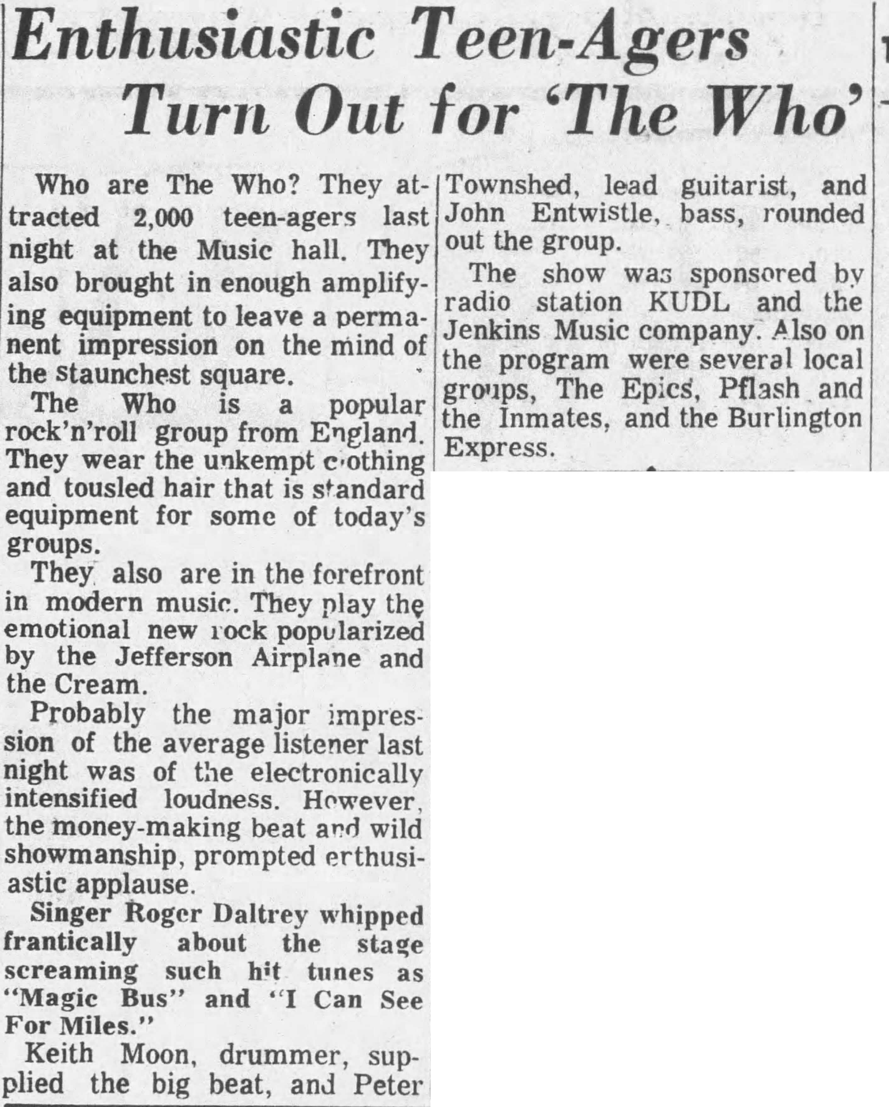 The Who play the Music Hall in Kansas City, Missouri
