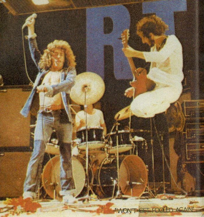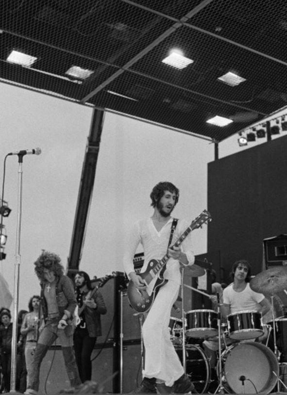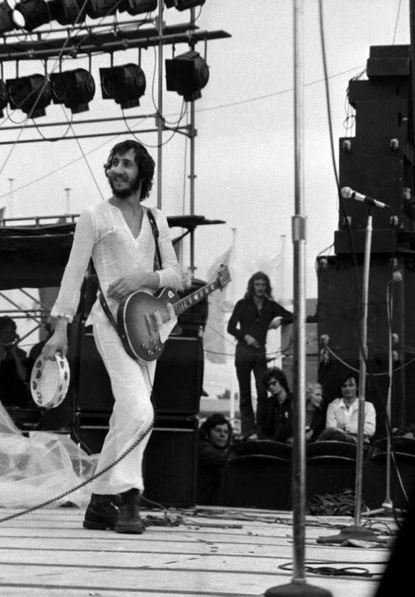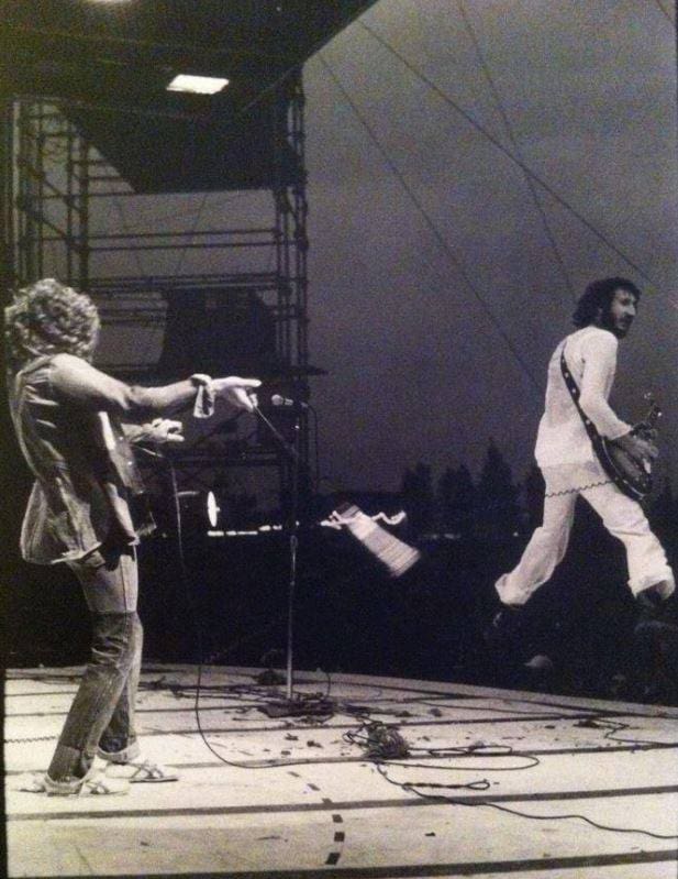 The Who play the FĂȘte de l'HumanitĂ© at Parc Georges-Valbon in Paris, France. Four hundred thousand attend and the concert is filmed by Freddy Hausser. Pete takes Eric Clapton with him as part of his effort to get him off heroin and back in circulation. During The Who's set, Eric is mistaken for a fan and is escorted from the wings by one of the stage crew.