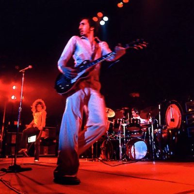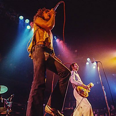 The Who play at the Chicago International Amphitheater. Backstage, Graham Hughes puts The Who in football helmets to shoot the sleeve for Odds And Sods. Due to size problems, Pete and Roger switch helmets.