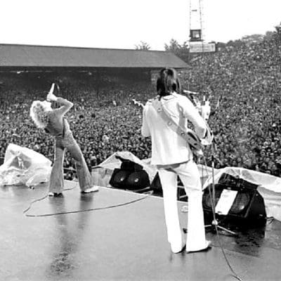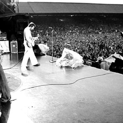 The Who start a three-date tour of the UK at the Charlton Football Ground. Since all three dates are at football stadiums, the tour is known as the "Who Put the Boot In" tour. Fans who attend wonder "who'll stop the rain" as it pours buckets throughout the day. This show also puts The Who in the Guinness Book of World Records as "The World's Loudest Pop Group" as their output registers 120 decibels at 50 meters. Supporting acts are The Sensational Alex Harvey Band, Little Feat, The Outlaws and Streetwalkers. Sold at the show is an elaborate program called "Bellboy" that features a centerfold of a nude Keith Moon