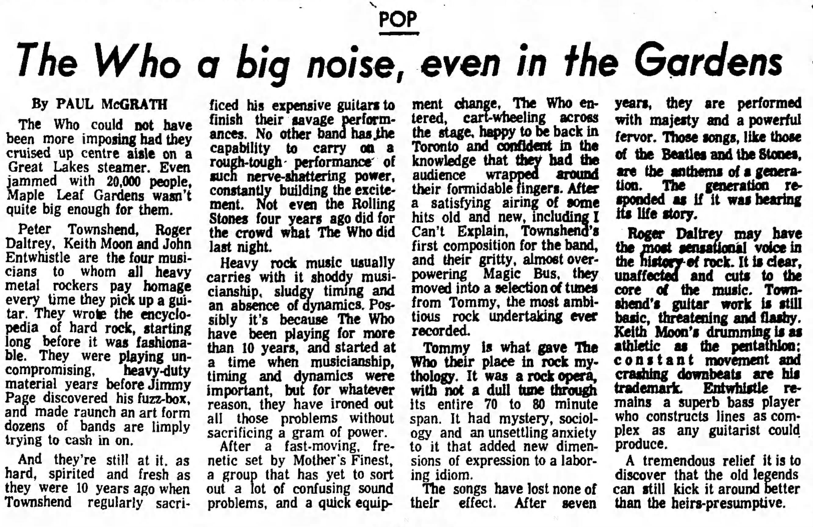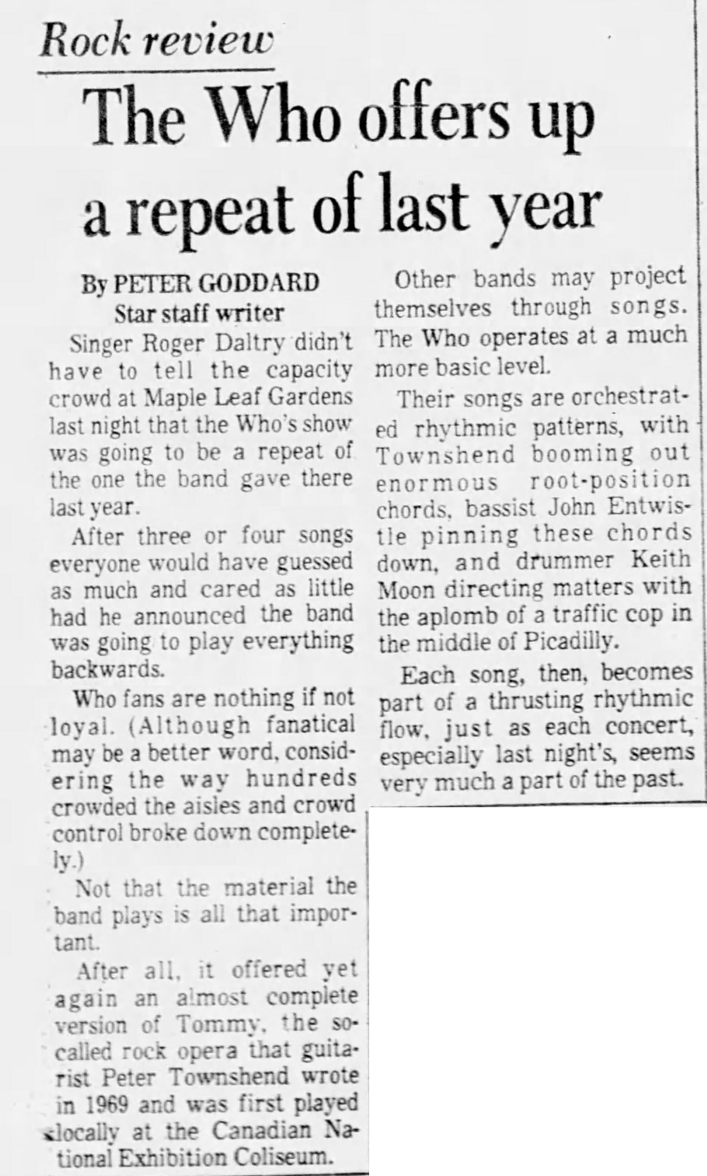 The Who play the Maple Leaf Gardens in Toronto, Canada
