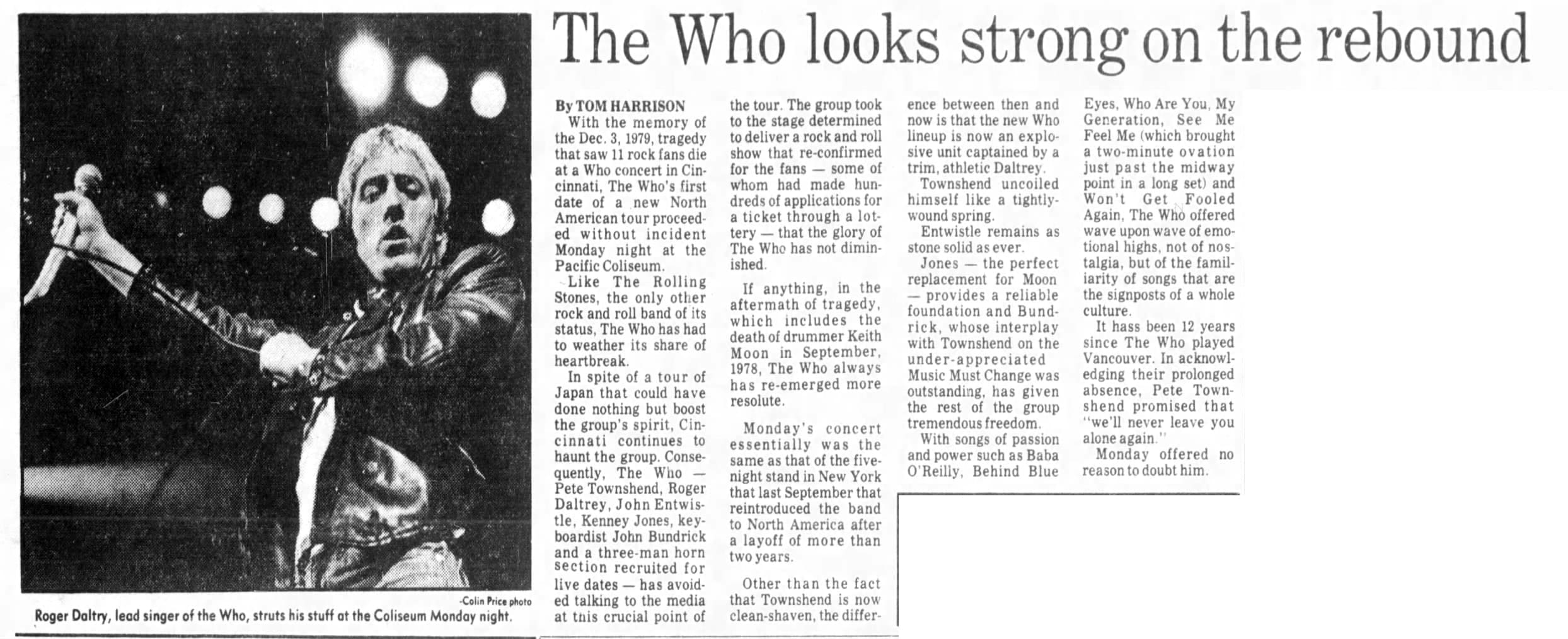 The Who play the Pacific Coliseum in Vancouver, British Columbia, Canada