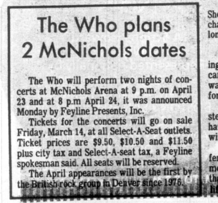 The Who play the McNichols Sports Arena in Denver, Colorado
