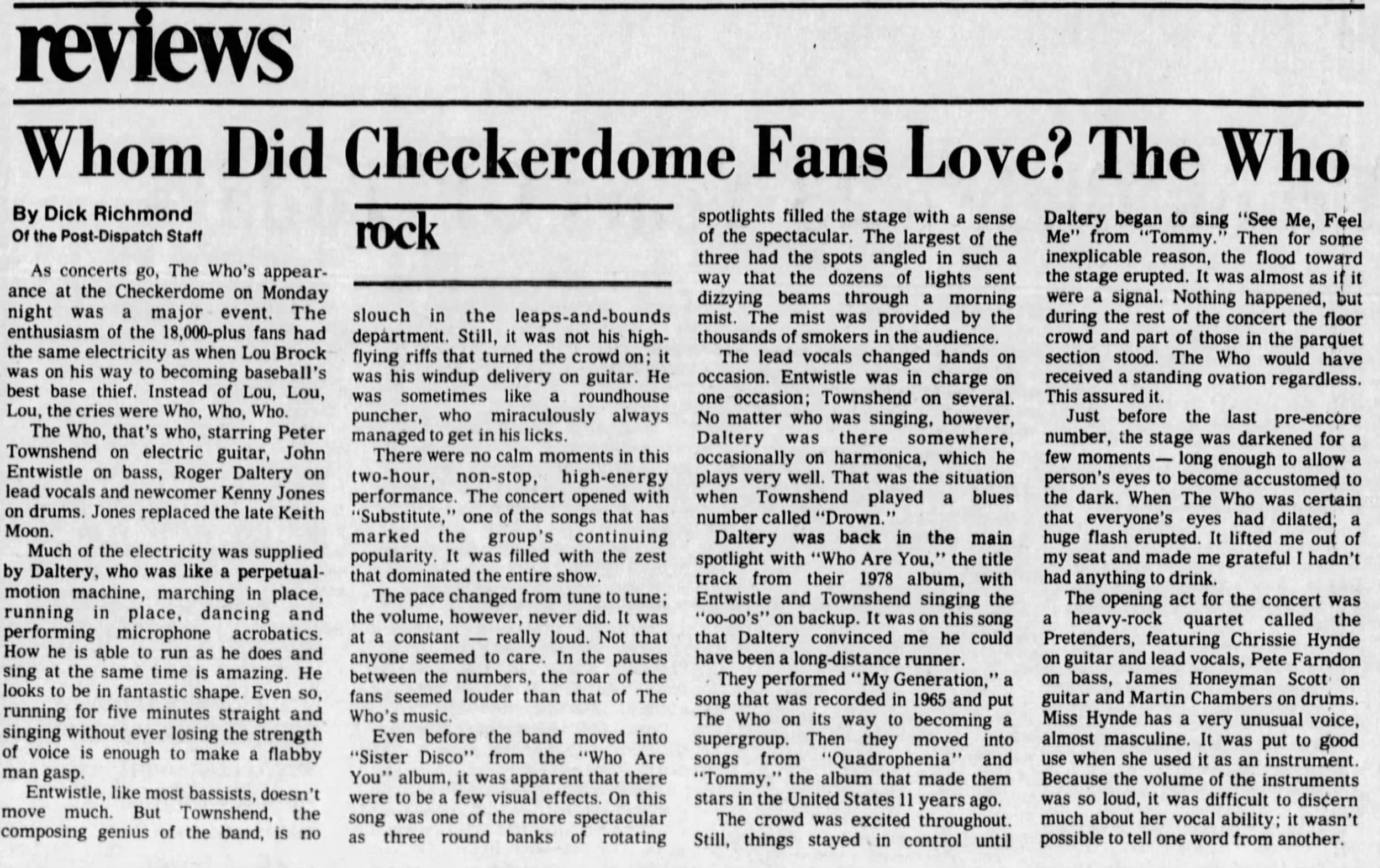The Who play the Checkerdome in Saint Louis, Missouri