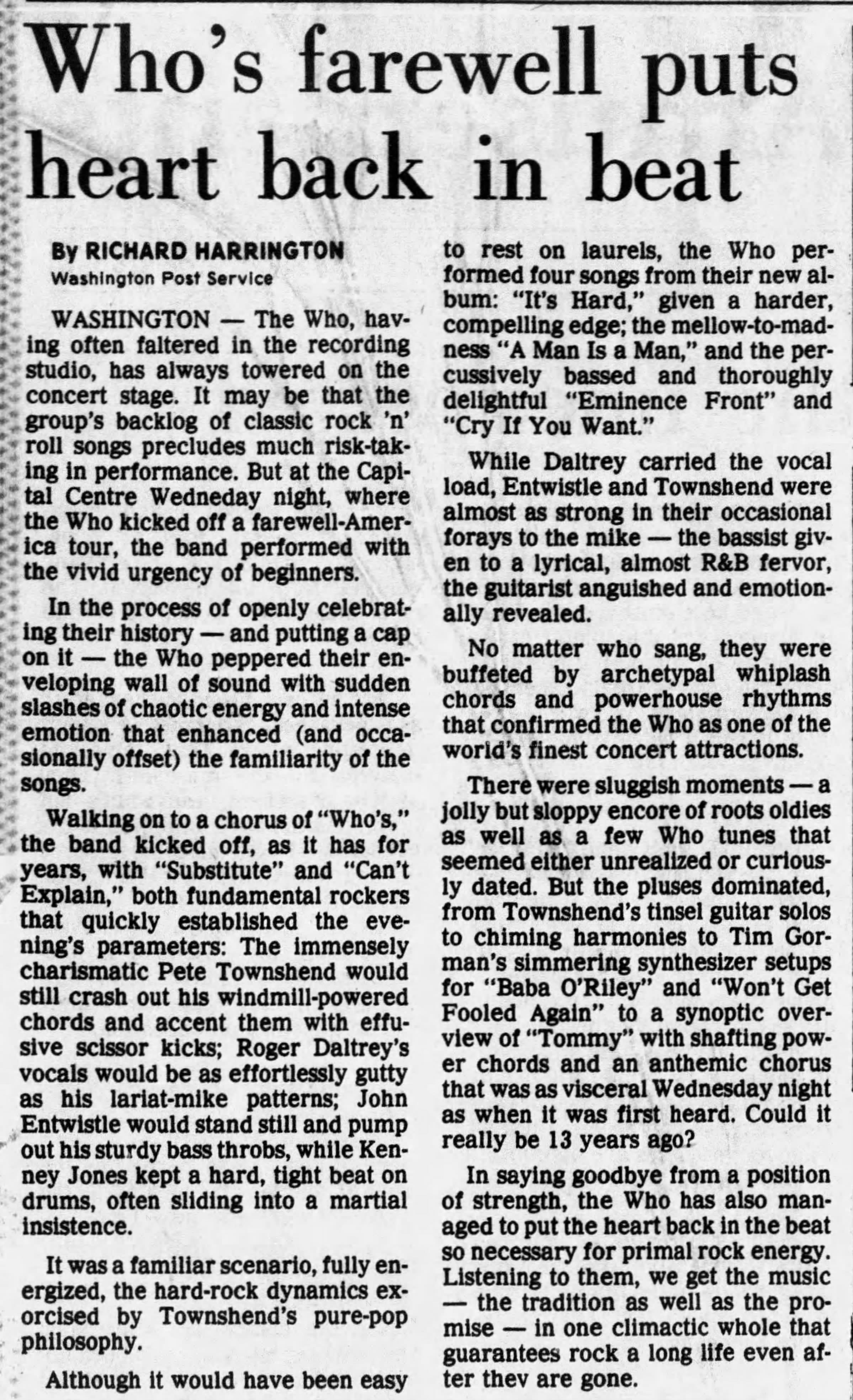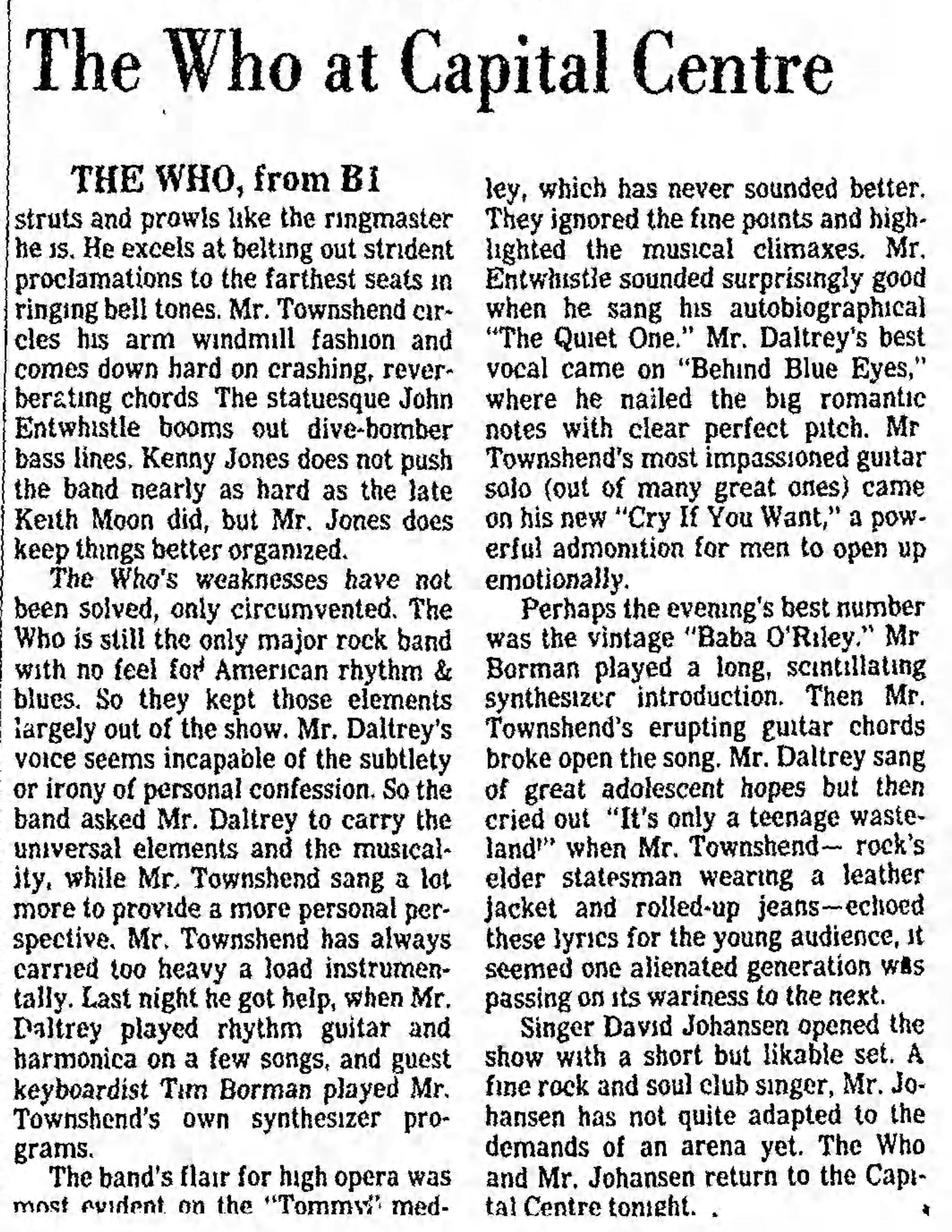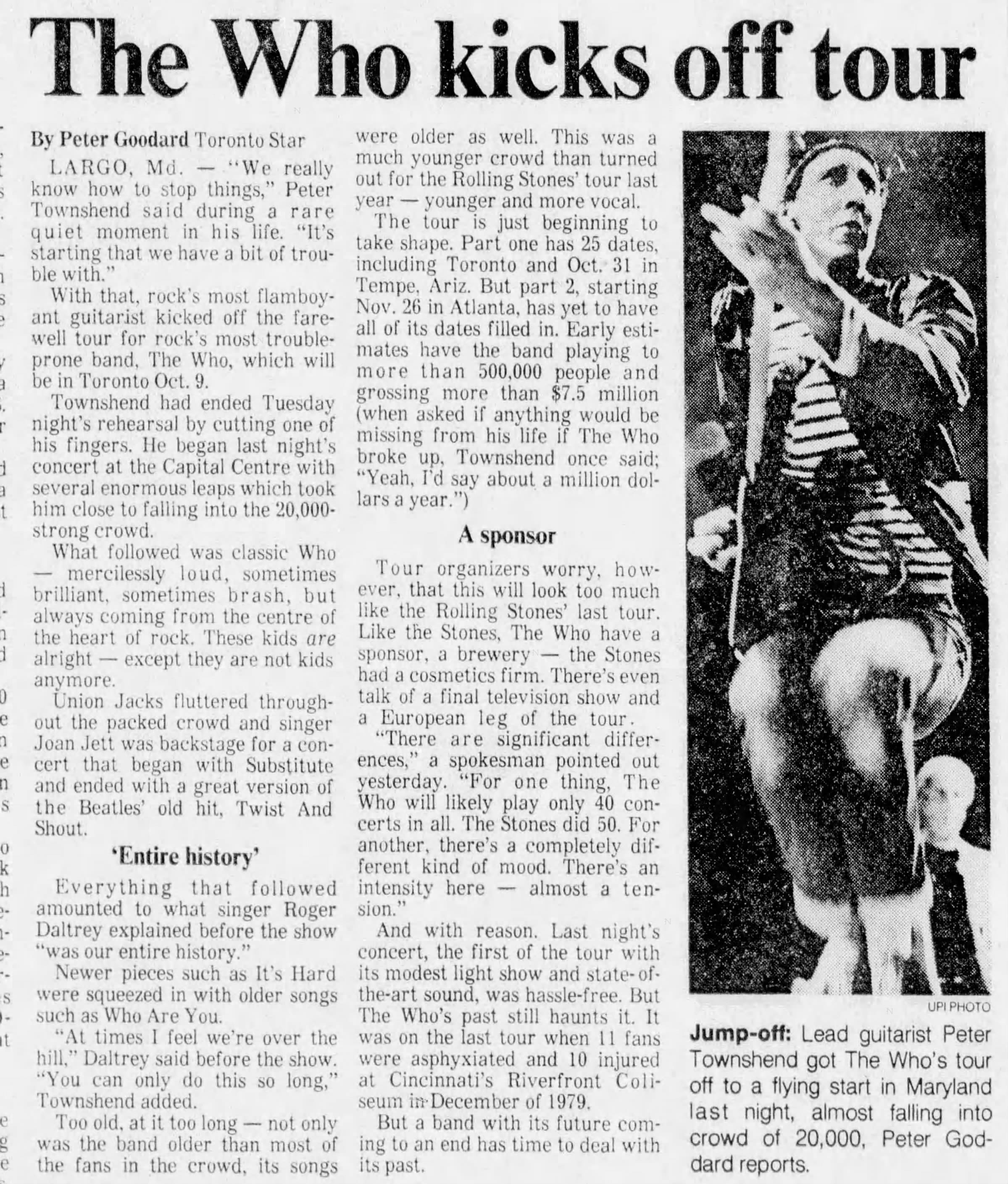 The Who play the Capital Centre in Landover, Maryland