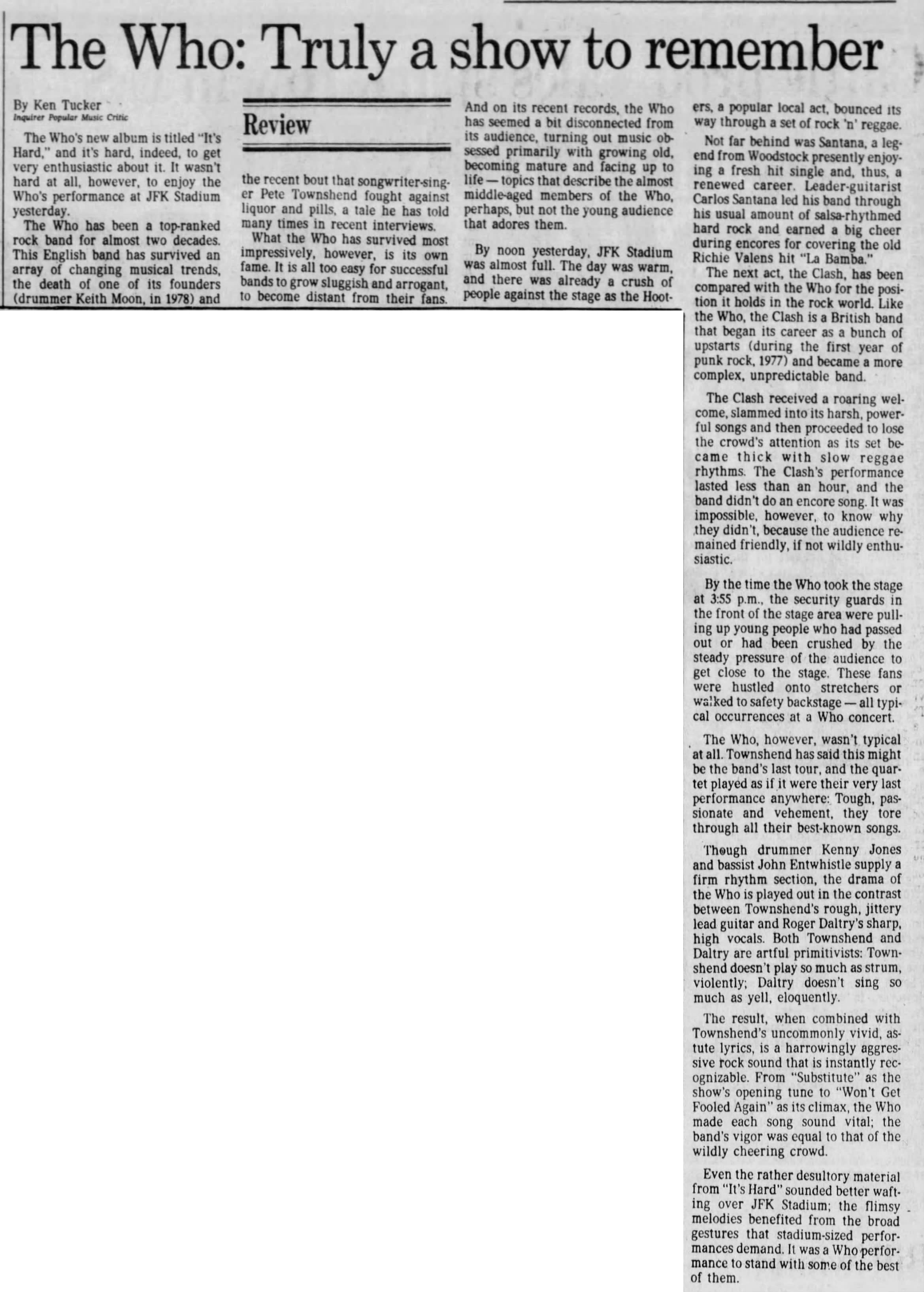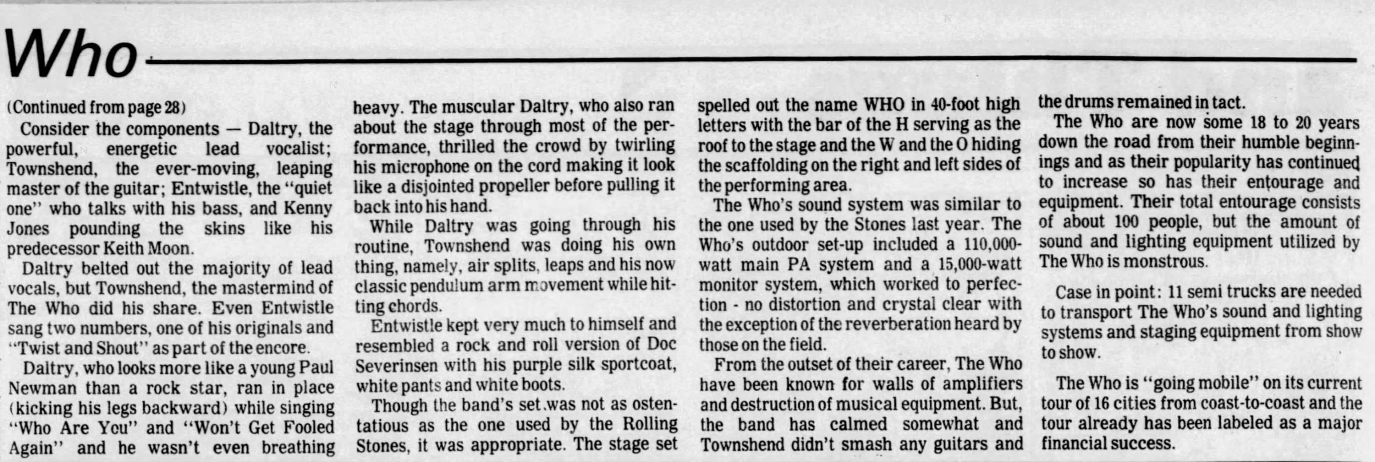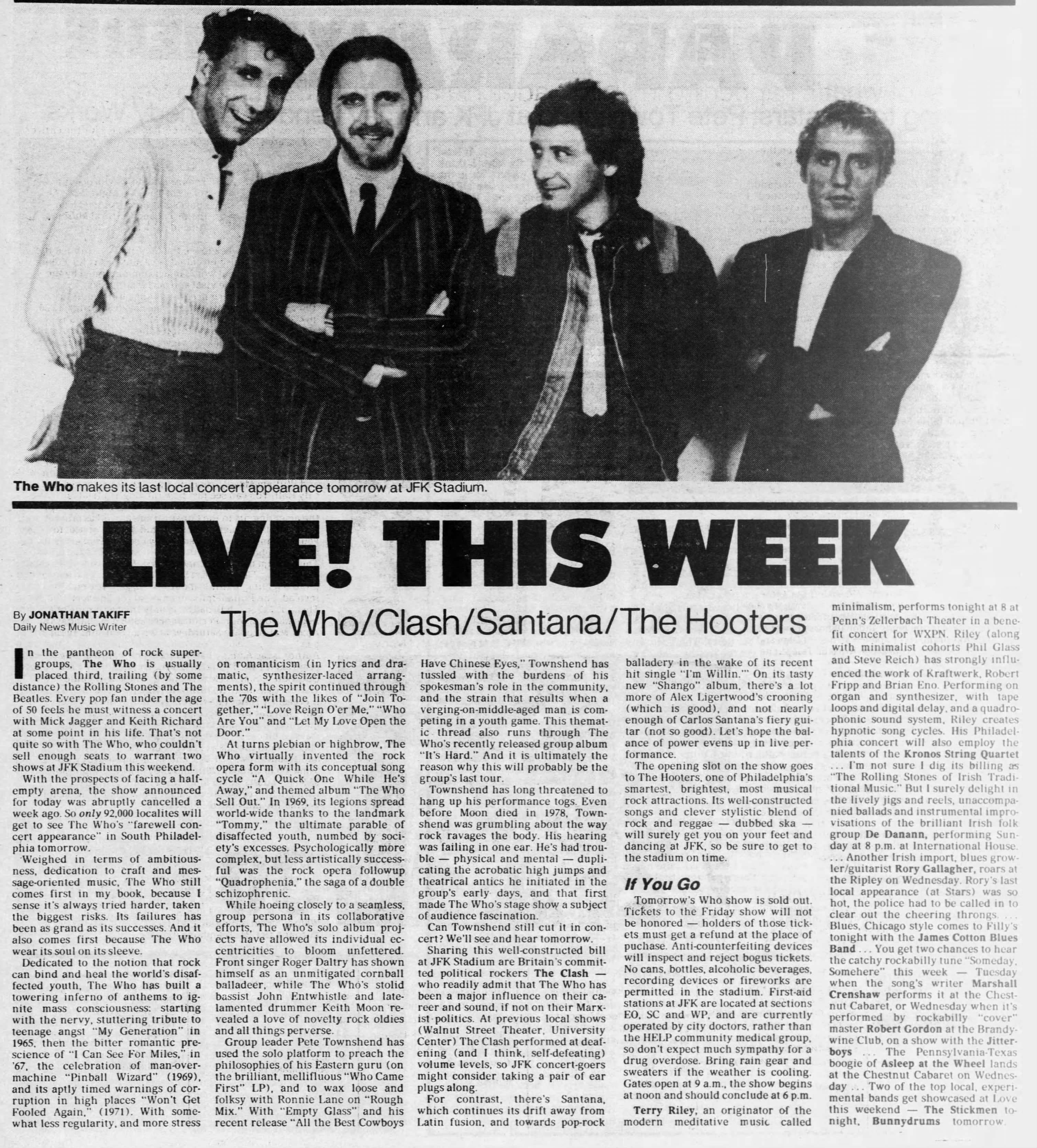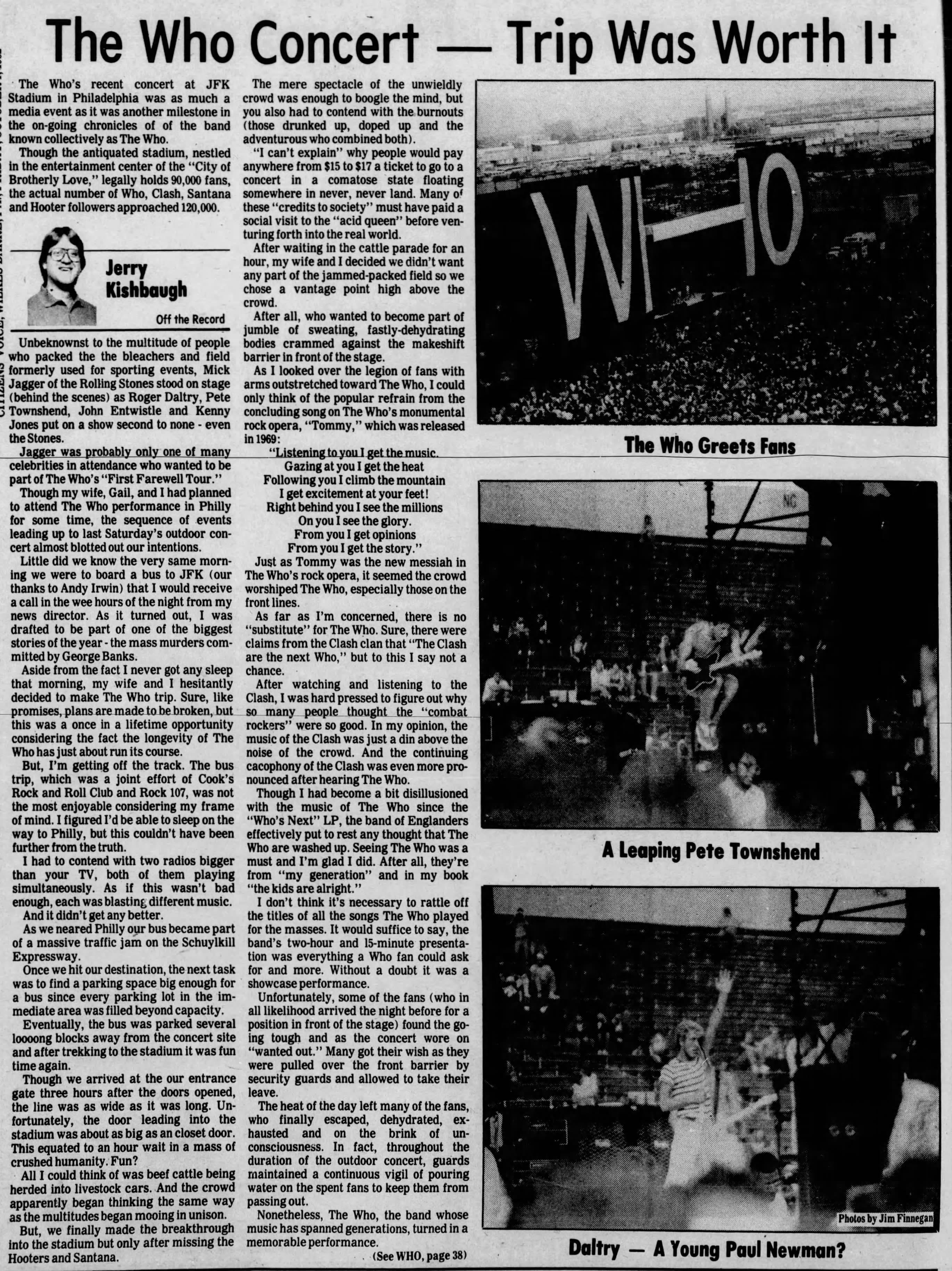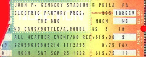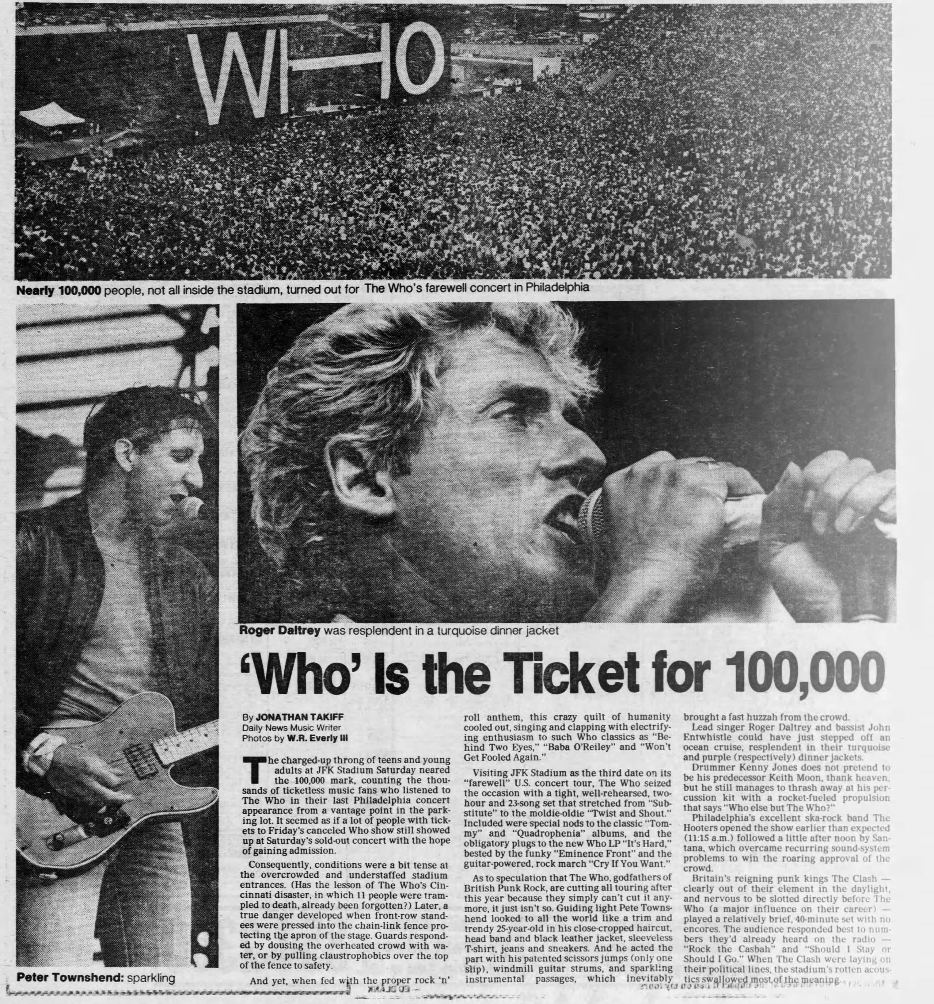 The Who play the John F. Kennedy Stadium in Philadelphia, Pennsylvania