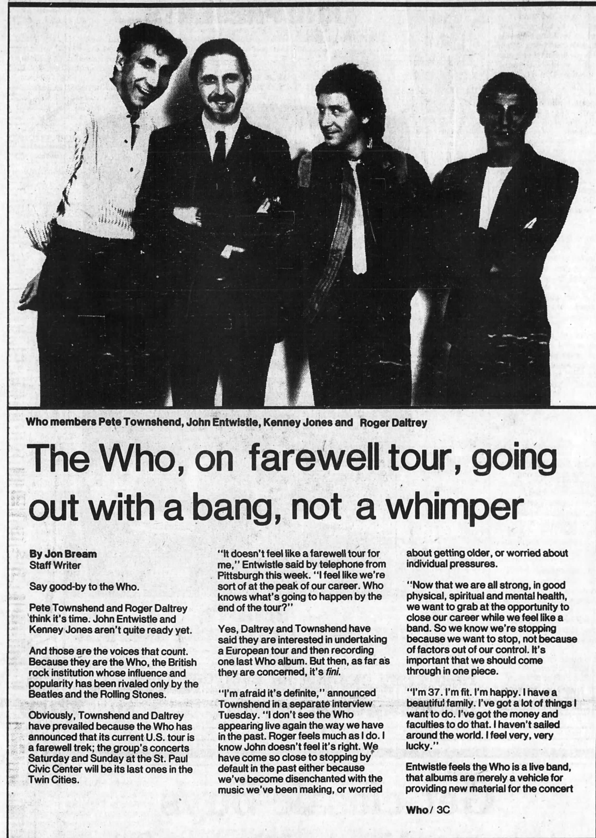 The Who play the Saint Paul Civic Center in Saint Paul, Minnesota