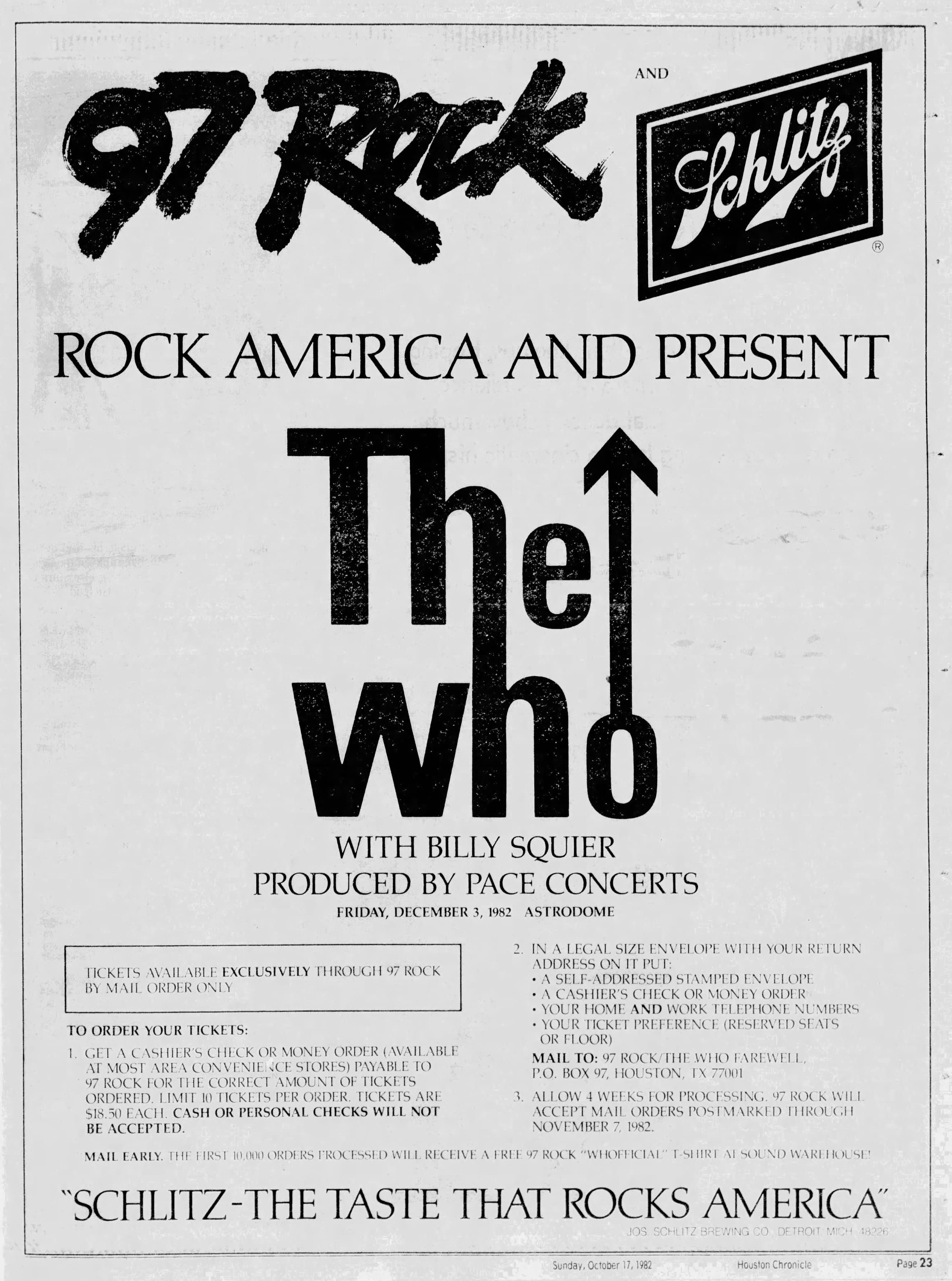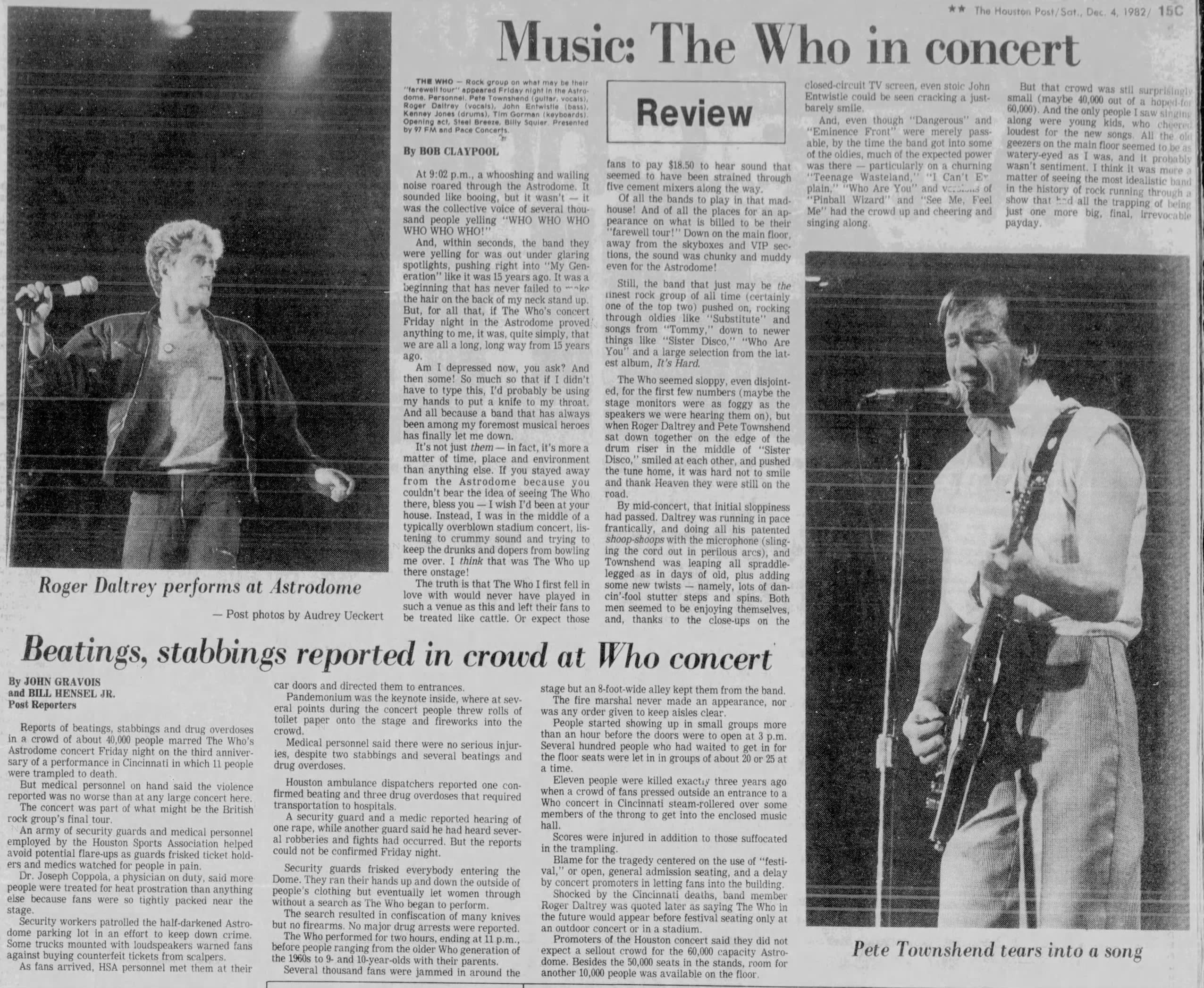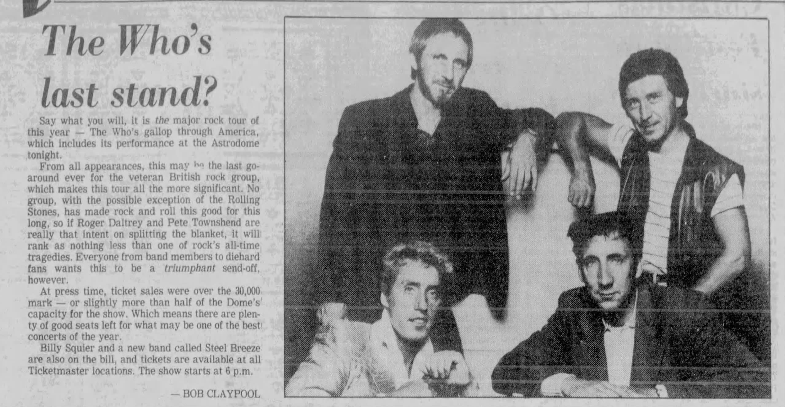 The Who play the Astrodome in Houston, Texas. Billy Squire and Steel Breeze are the opening acts.