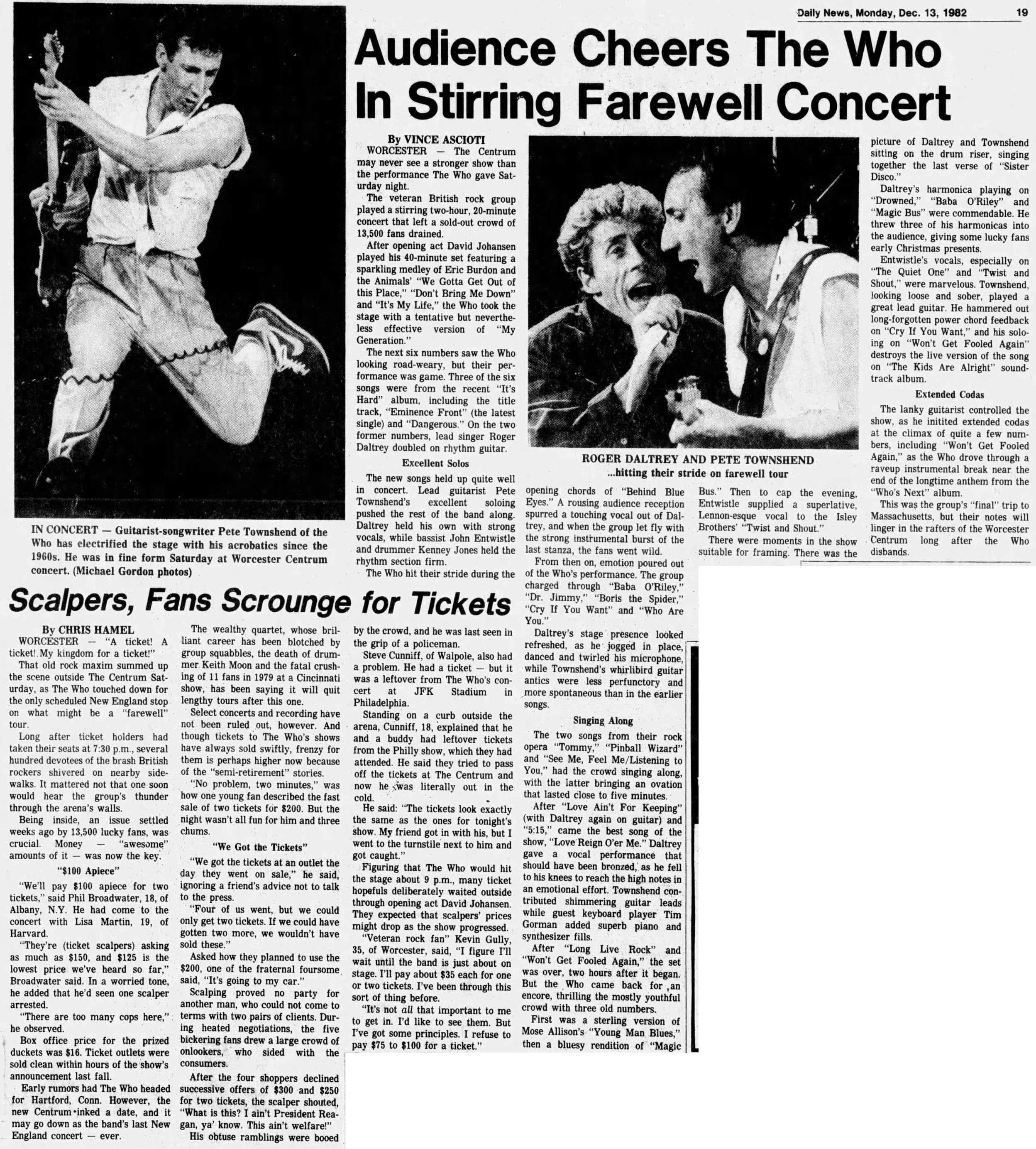 The Who play the Centrum in Worcester in Worcester, Massachusetts