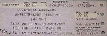 Wednesday, August 9th, 1989 The Who play the Lakewood Amphitheatre in Atlanta, Georgia « 1989-08-08 1989-08-11 » WhoTube Comments Leave a Reply Cancel replyYou must be logged in to post a comment. This site uses Akismet to reduce spam. Learn how your comment data is processed. Map Venue Lakewood Amphitheatre, Atlanta I was there Latitude: 33.703938 Longitude: -84.396060 For more information on The Who’s history and concerts visit our friends www.thewhothismonth.com www.thewholive.com
