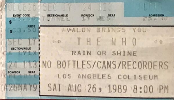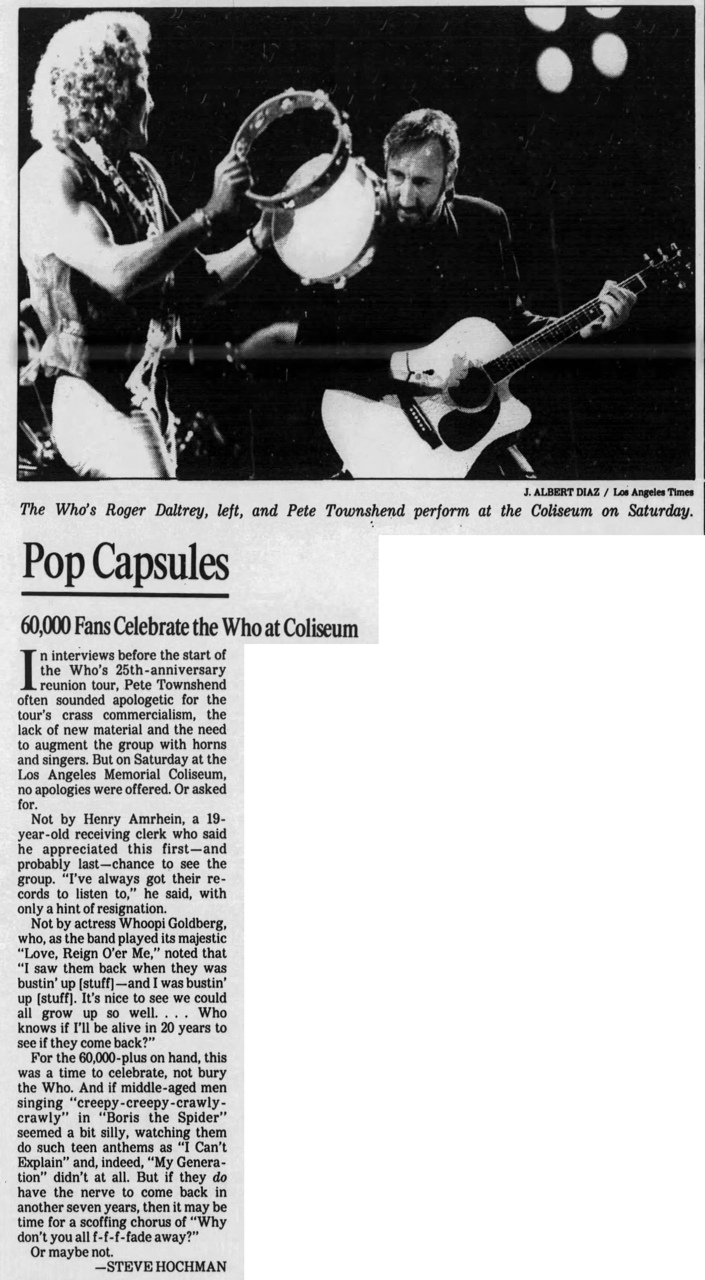 The Who play the Los Angeles Memorial Coliseum in Los Angeles, California