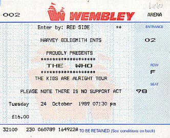 The Who play the second of four nights at Wembley Arena in London. Additional dates are on the 23th, 26th and 27th.