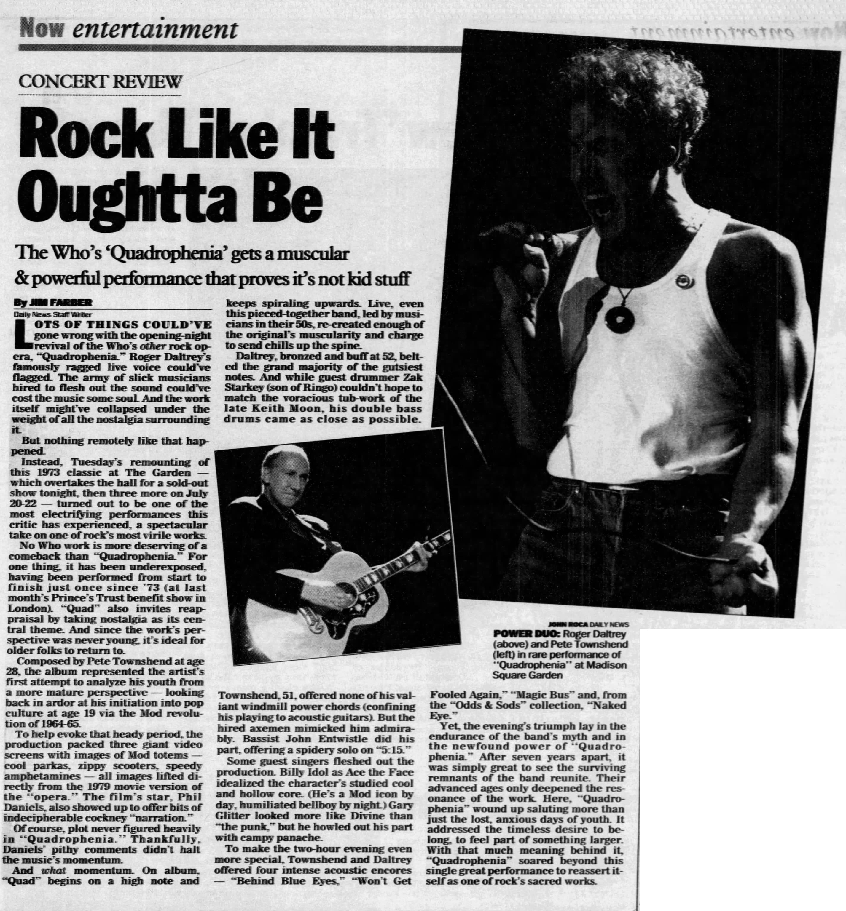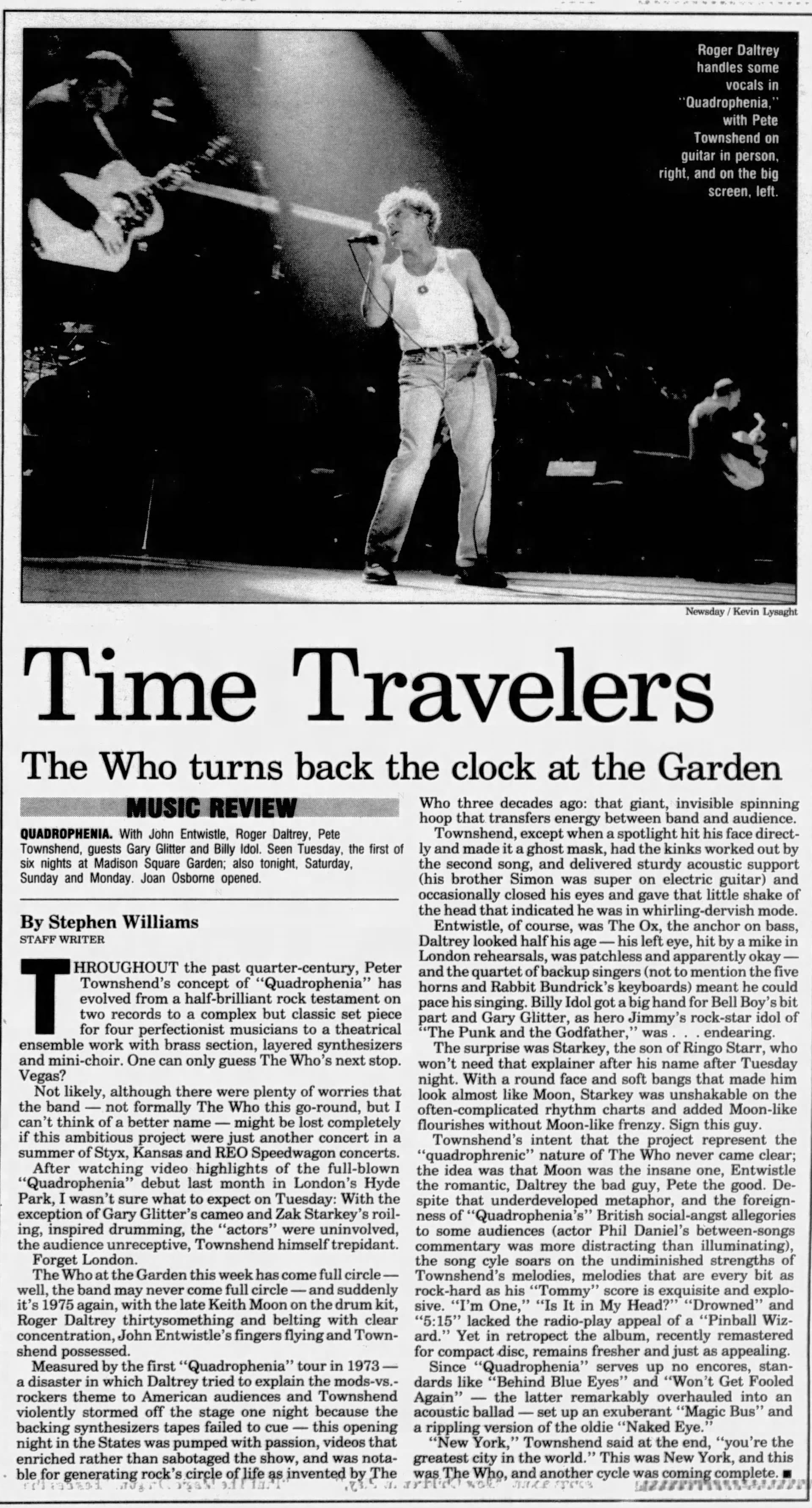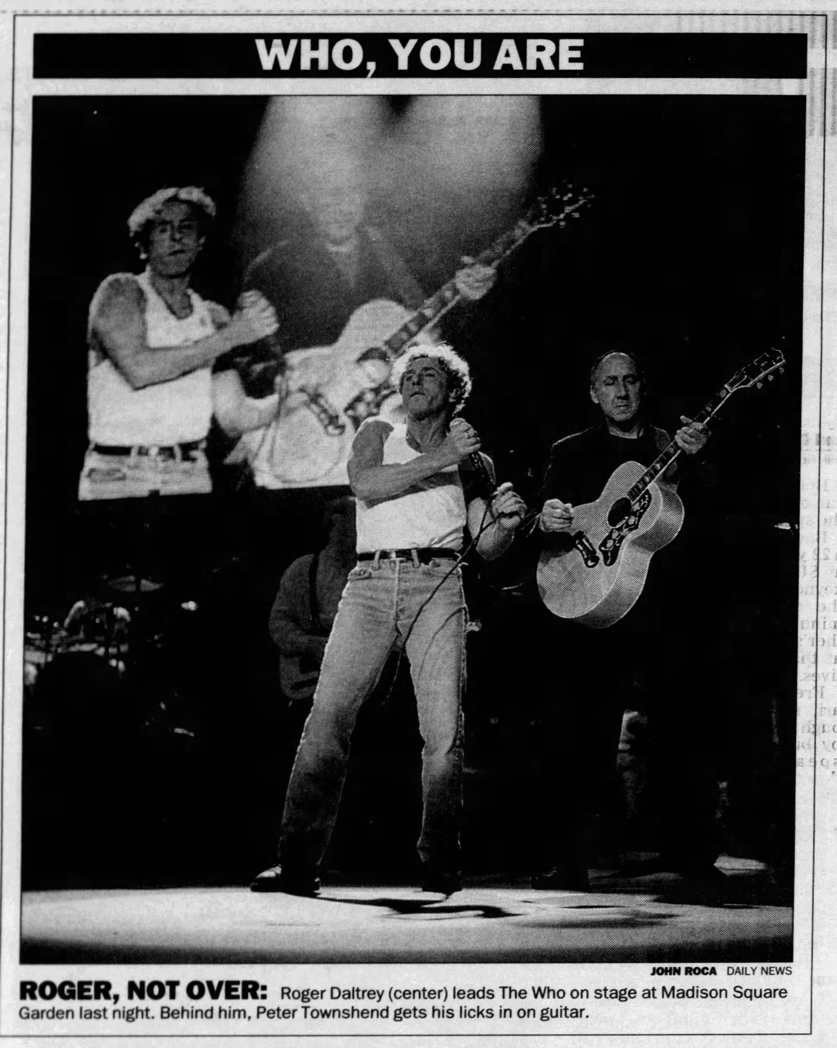 The Who play in New York at Madison Square Garden. This is the first of 6 shows over 7 nights