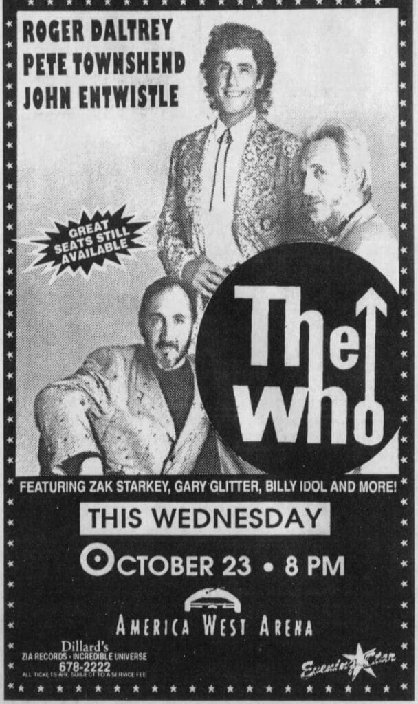 The Who play the America West Arena in Phoenix, Arizona