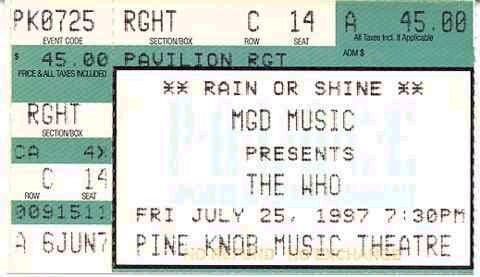 The Who play the Pine Knob Music Theatre in Clarkston, Michigan