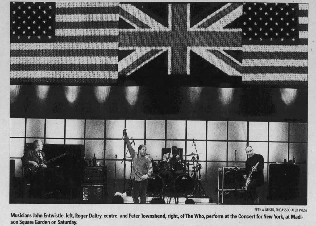 The Who play Madison Square Gardens in New York City, New York as part of The Concert for New York City.