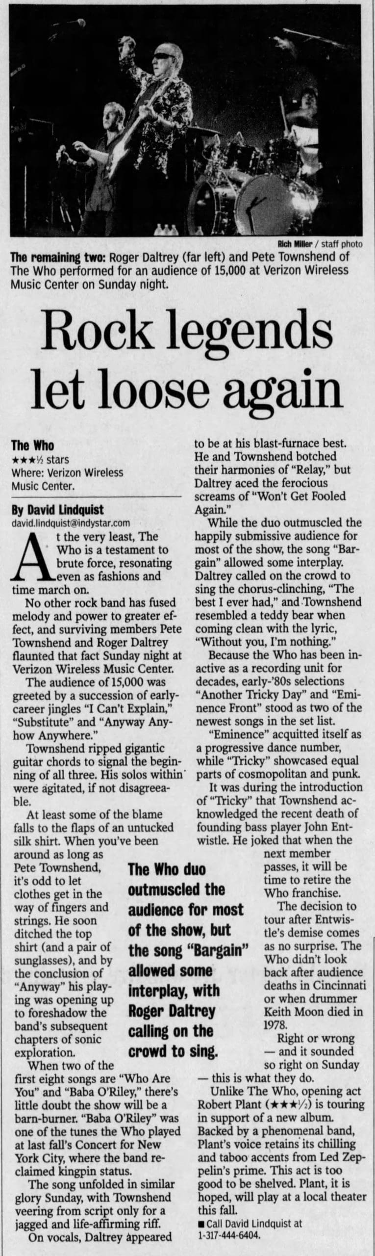 The Who play Verizon Wireless Music Center in Noblesville, Indiana