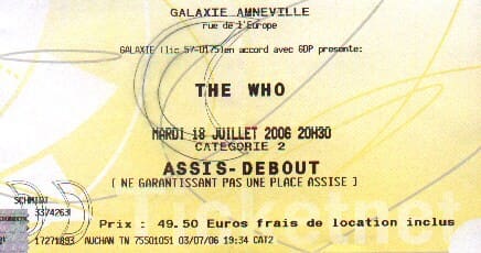 Tuesday, July 18th, 2006 The Who play the Galaxie Amnéville in Metz, France « 2006-07-17 2006-07-20 » Links Go to Article WhoTube Comments Leave a Reply Cancel replyYou must be logged in to post a comment. This site uses Akismet to reduce spam. Learn how your comment data is processed. Map Venue Galaxie Amnéville, Metz I was there Latitude: 49.245806 Longitude: 6.128250 For more information on The Who’s history and concerts visit our friends www.thewhothismonth.com www.thewholive.com