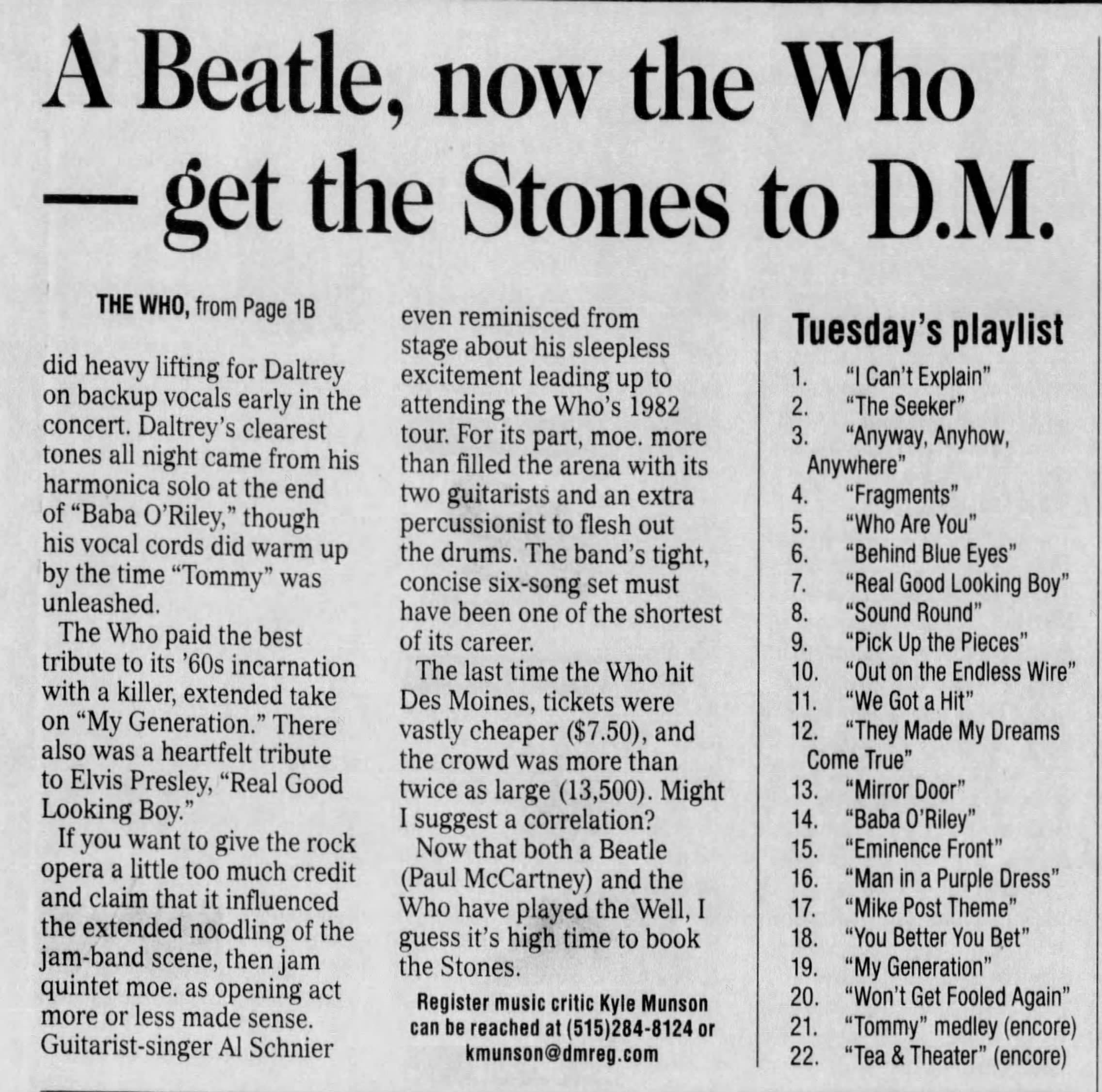 Visit The Who Concert Guide for more information about this show here: thewholive.net