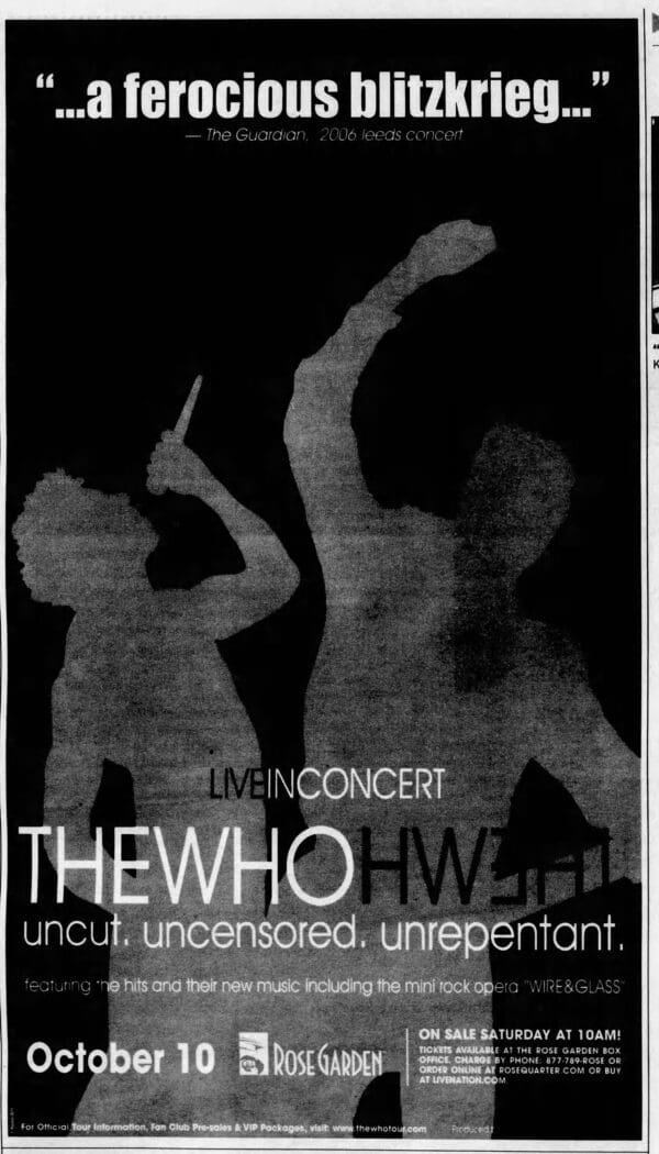 The Who play the Rose Garden in Portland, Oregon