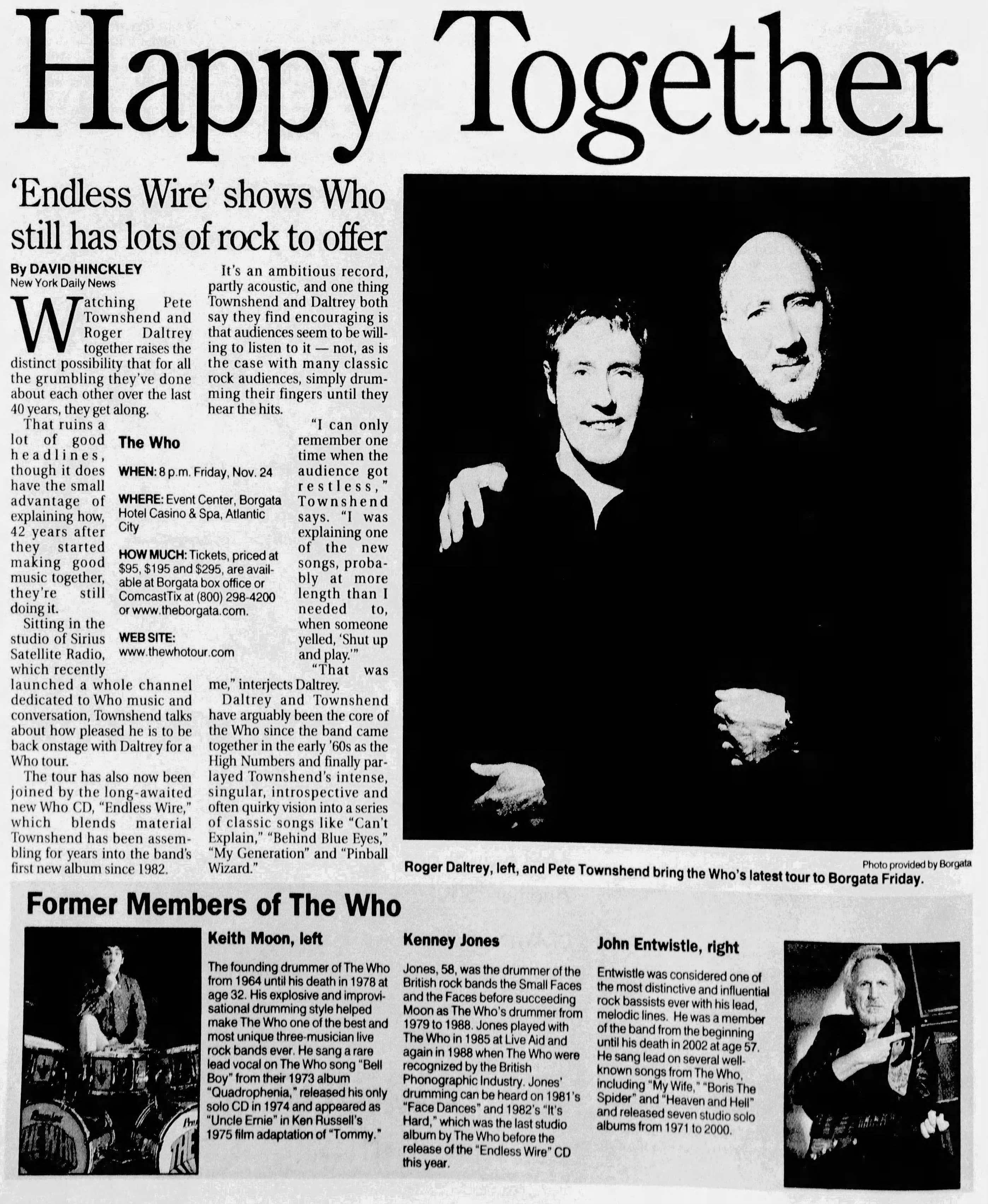 The Who play the Borgata Hotel Casino & Spa in Atlantic City, New Jersey