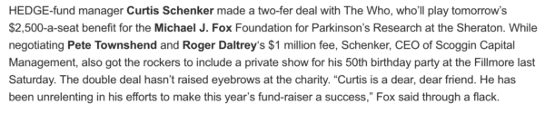 The Who perform a private show at the 50th birthday party of Curtis Schenker, CEO of Scoggin Capital Management, at the Fillmore at Irving Plaza, New York. The show is part of a deal for Schenker setting up a charity show for Parkinson's on the 5th