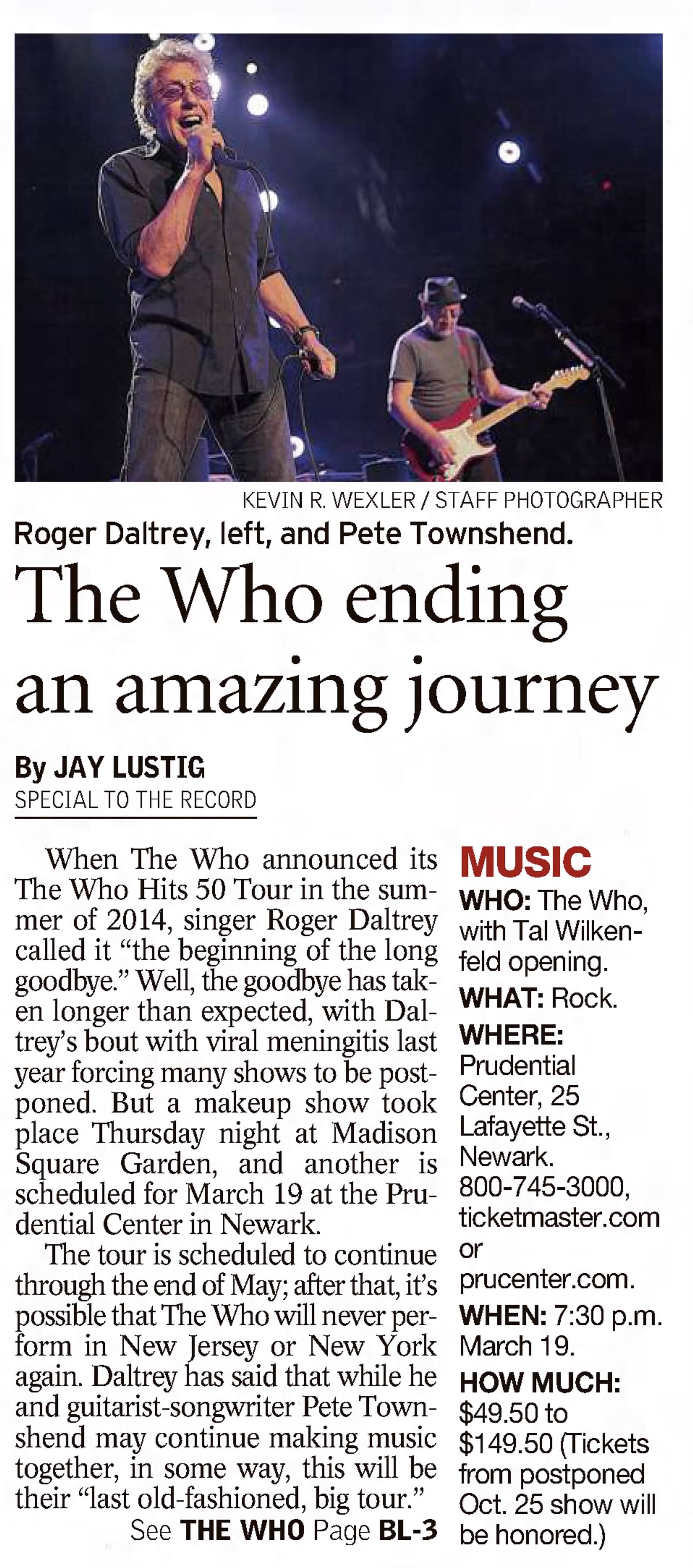 The Who play the Prudential Center in Newark, New Jersey