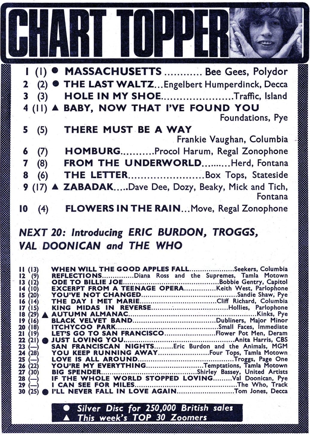 “I Can See For Miles” enters the Disc and Music Echo “Chart Topper” chart at #29