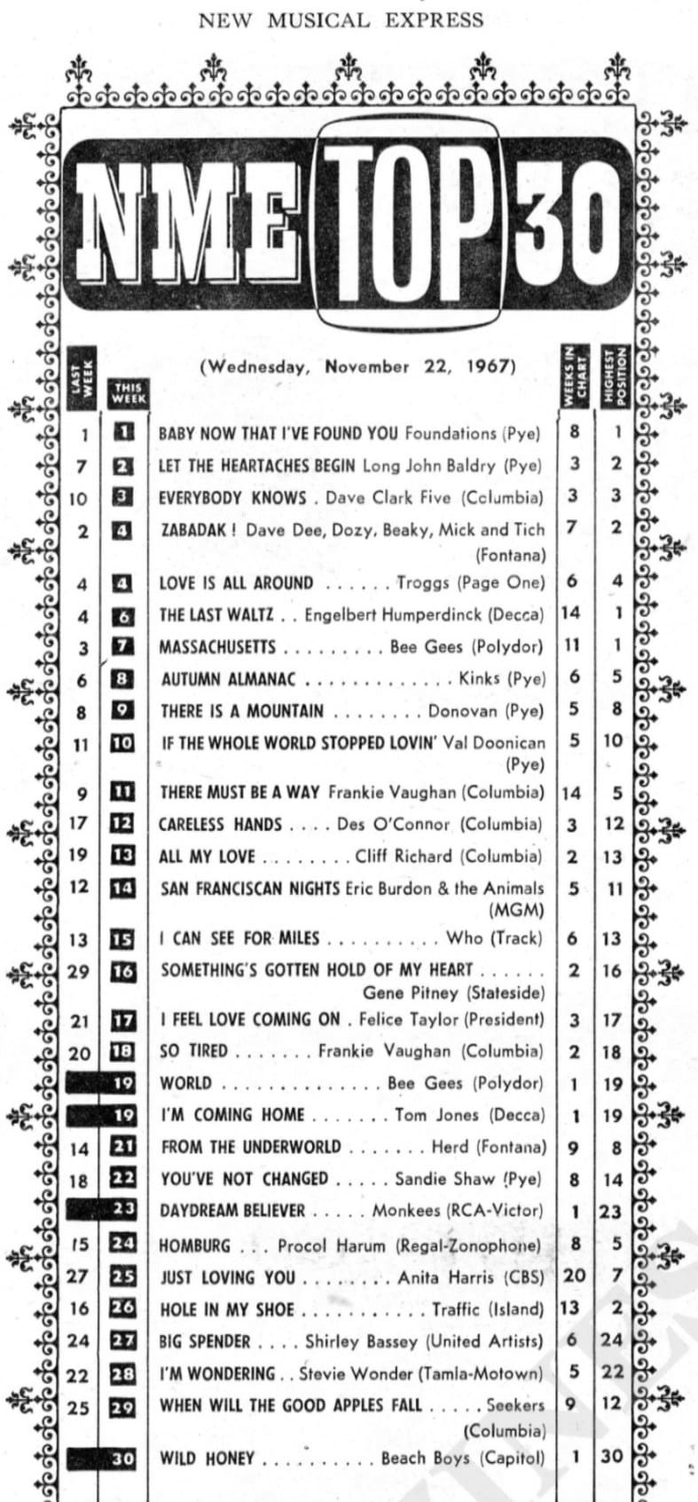I Can See For Miles reaches #13 in the New Musical Express Top 30