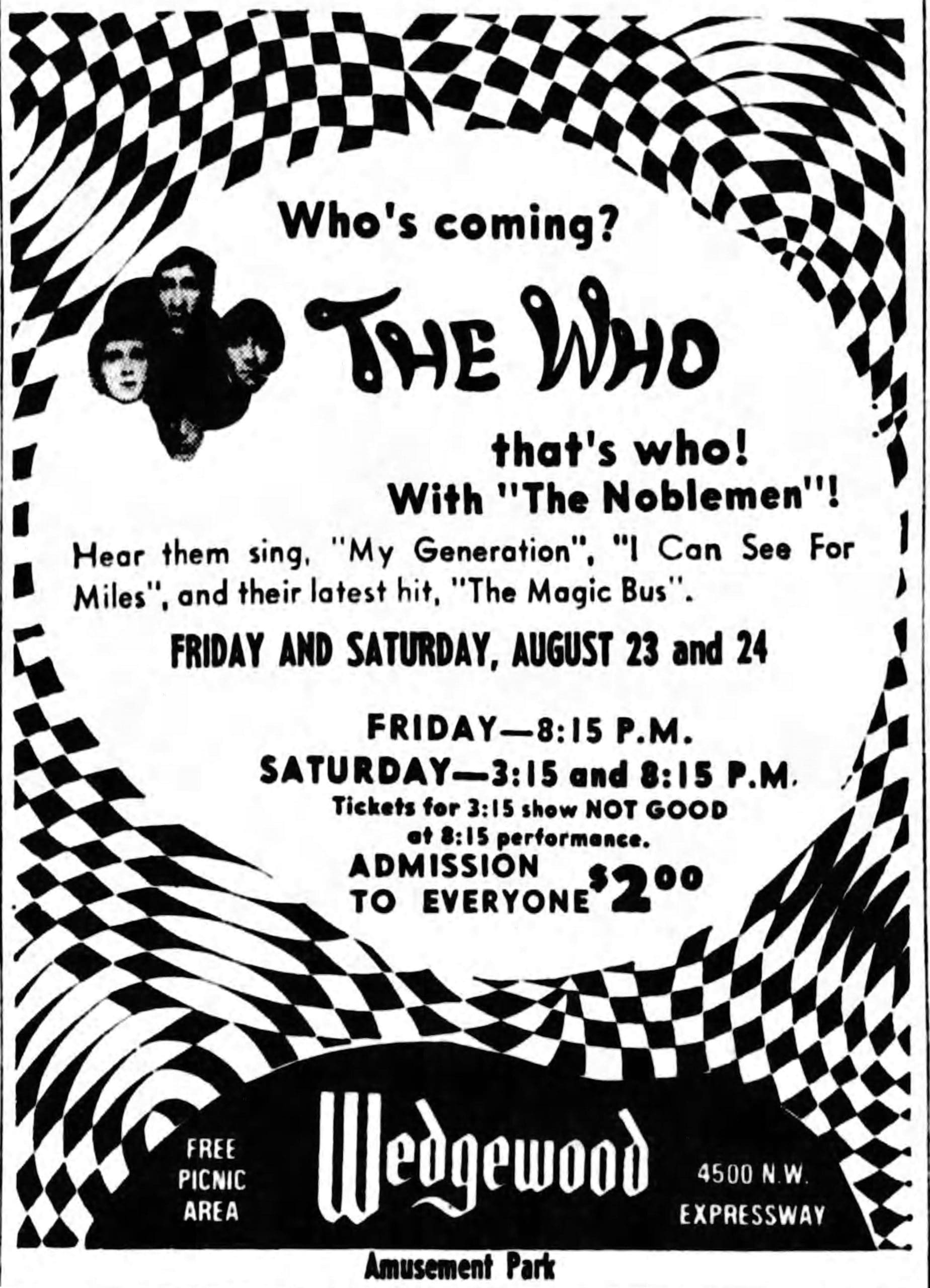 The Who play the Wedgewood Village Amusement Park in Oklahoma City, Oklahoma