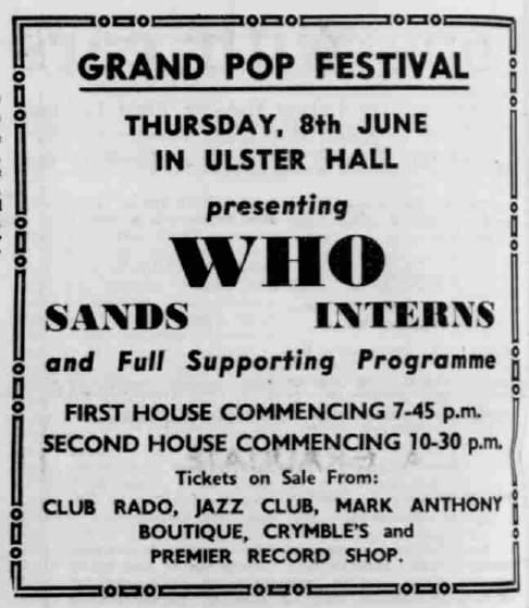The Who play the Golden Slipper Ballroom, Magilligan, North Ireland