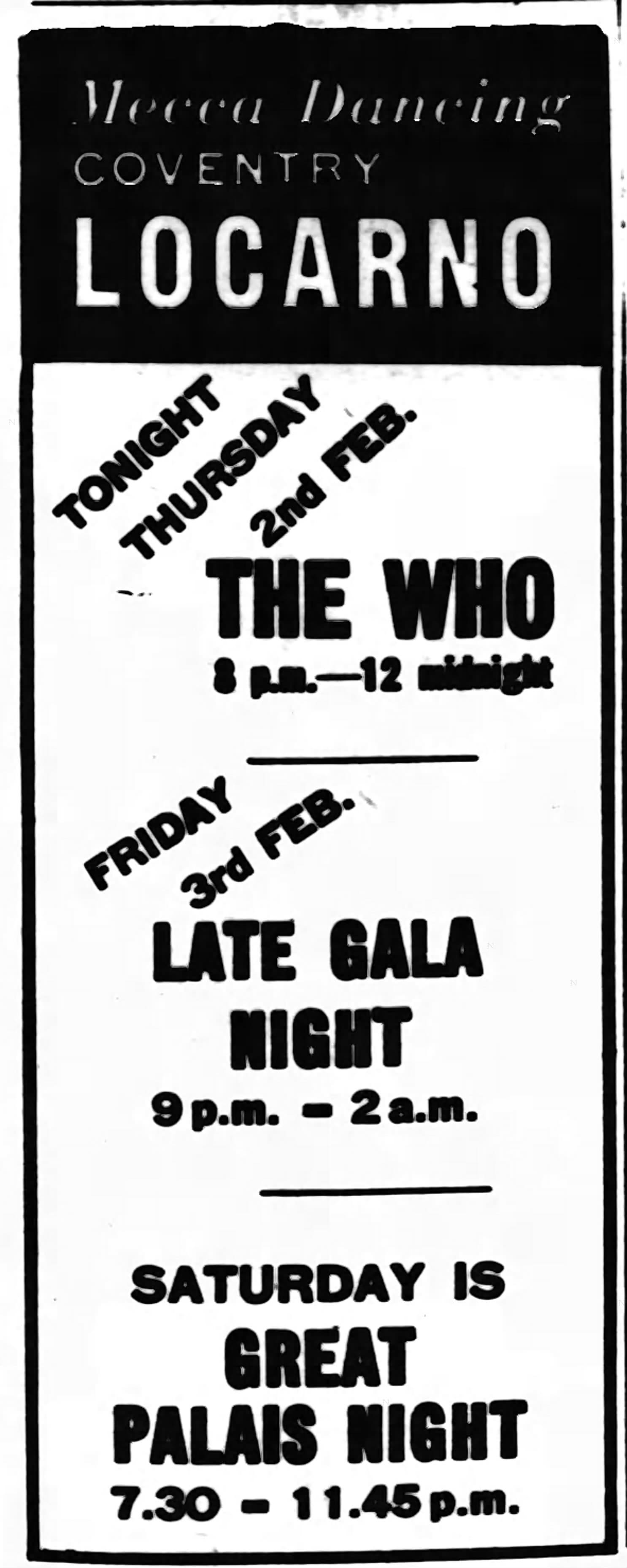 The Who play the Locarno Ballroom in Coventry, Warwickshire