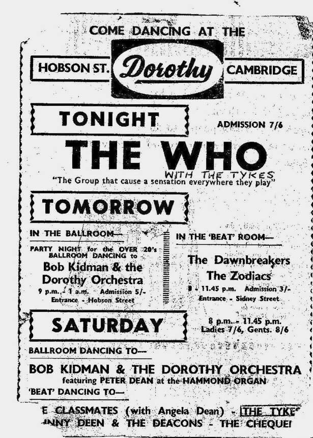 The Who play the Dorothy Ballroom in Cambridge, Cambridgeshire