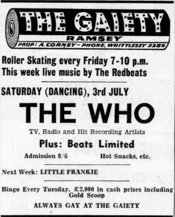 The Who play The Gaiety Ballroom in Ramsey, Huntingdonshire