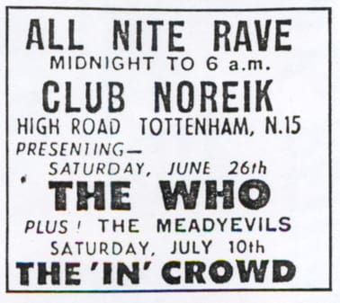 The Who play the “All Nite Rave” at Club Noreik in Tottenham